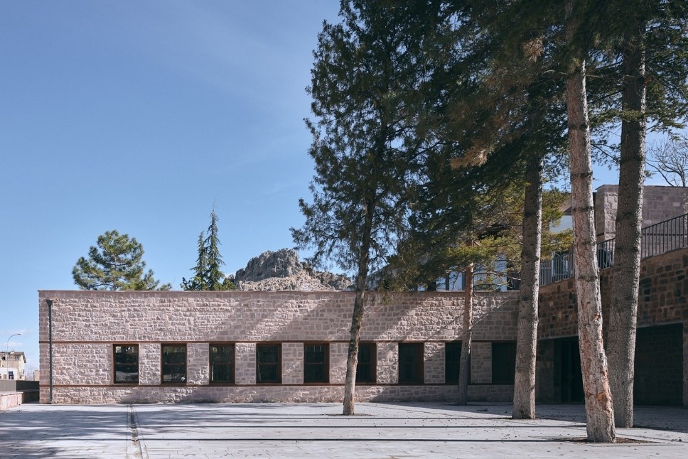 Sille İlkokulu, bugün Konya şehir merkezinin 8 km kuzeybatısında bulunan Sille’de, mübadele zamanı neredeyse tamamen terk edilmiş ve dokusunun büyük bir kısmı erimiş eski bir Rum-Osmanlı köyünde yer alıyor. Okul, aynı arazide, kendinden neredeyse 100 yıl önce var olan eski bir han yapısının izlerini takip ediyor. Onun informal bir rekonstrüksiyonu. Vadi boyunca devam eden derenin doğu kıyısında kalan eğimli bir araziye yerleşiyor. Okulun taş duvarlarla örülen basit ve katı geometrisi ahşap strüktürün esnek yapısı ile serbestleşiyor. Geleneksel ahşap kagir duvarlar irili ufaklı hacimler yaratacak şekilde farklı açıklıklarda diziliyor.