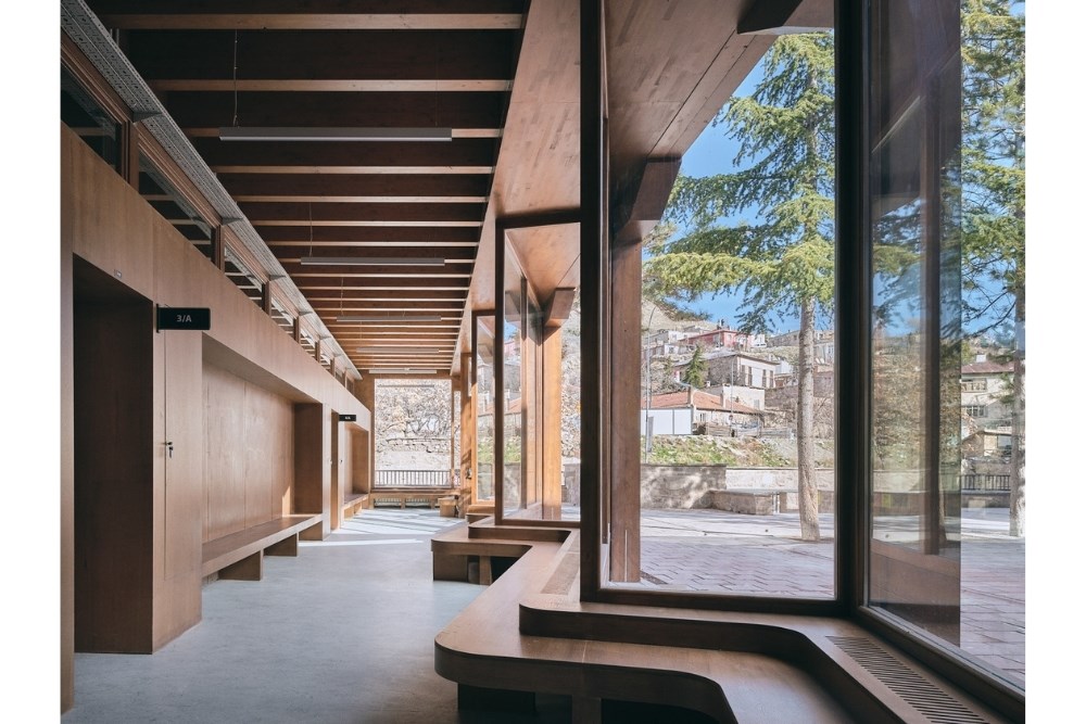Orta avlu zig-zag formunda ahşap bir arkadla sarılıyor. Bu avluya bakan koridorlar öğrenciler için hem bir teneffüs hem de bir hazırlık alanı sağlıyor. Sille İlkokulu, hem tektonik ifadesi hem de kamusal eğitim programı ile yüzyıl başından bu yana eriyen yerel dokunun onarımı için bir adım. Tarihi bir yapıdan referansla günümüz ihtiyaçlarına cevap verecek şekilde, geleneksel ve çağdaş teknikler bir arada kullanılarak tasarlanan bina geçmiş ve bugün arasında bir diyalog kurma hedefini taşıyor.