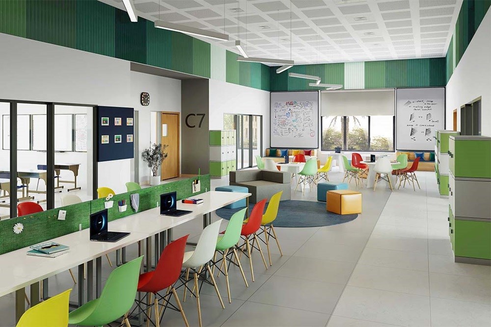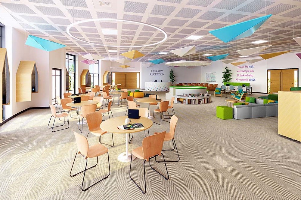 Okulun bir çok farklı alanında Soundtrust markalı akustik kumaş paneller kullanılmıştır.