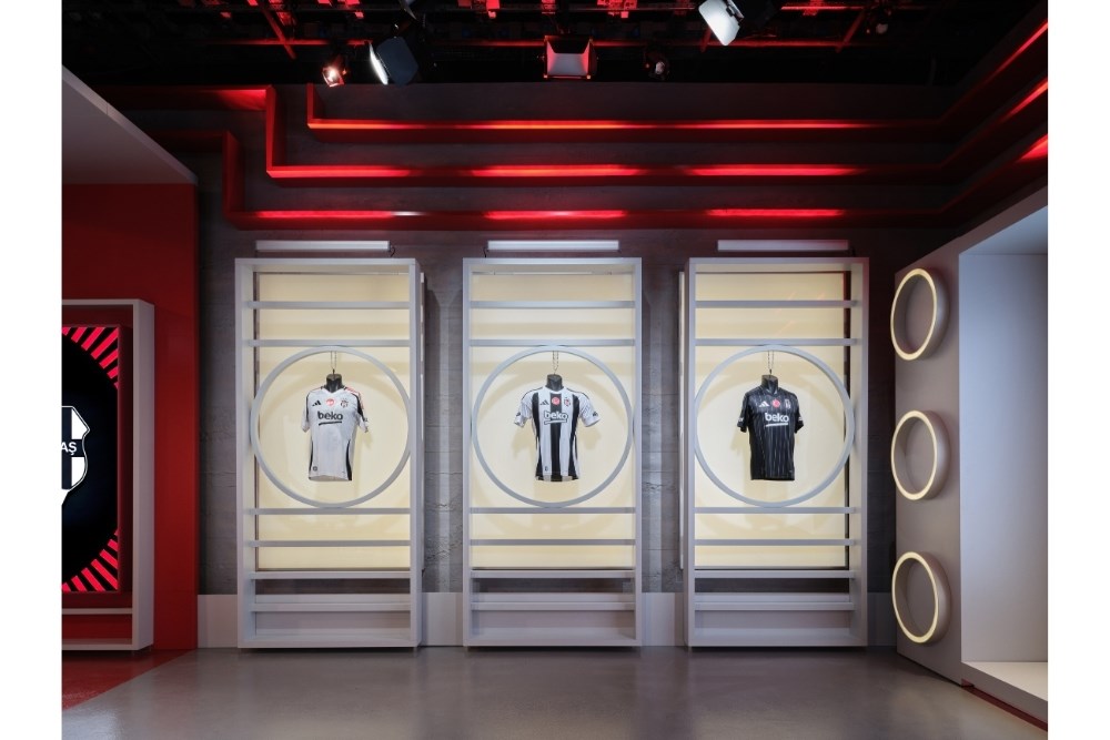 Beşiktaş Jimnastik Kulübü’nün 120. yılına özel tasarlanan Beşiktaş TV Stüdyosu, kulübün geçmişini ve güçlü kimliğini modern bir yaklaşımla yansıtmak üzere oluşturulmuştur. Siyah, beyaz ve kırmızı renklerinin dinamik ve güçlü çizgiler halinde bir araya getirilmesiyle çok yönlü kullanım imkânı sunan bir alan tasarlanmıştır.