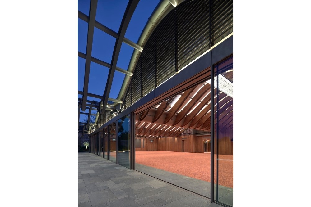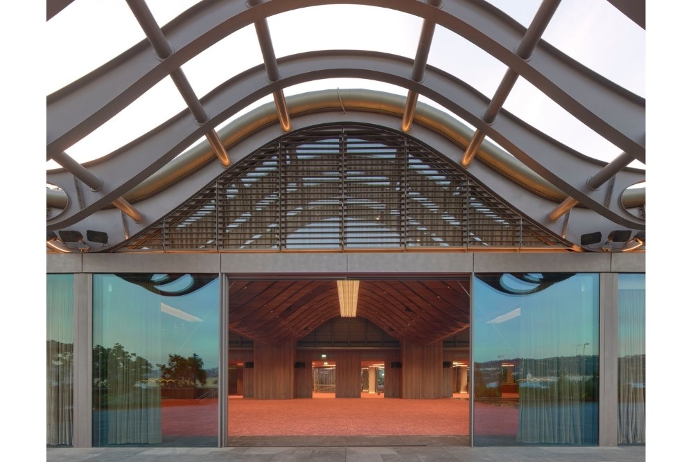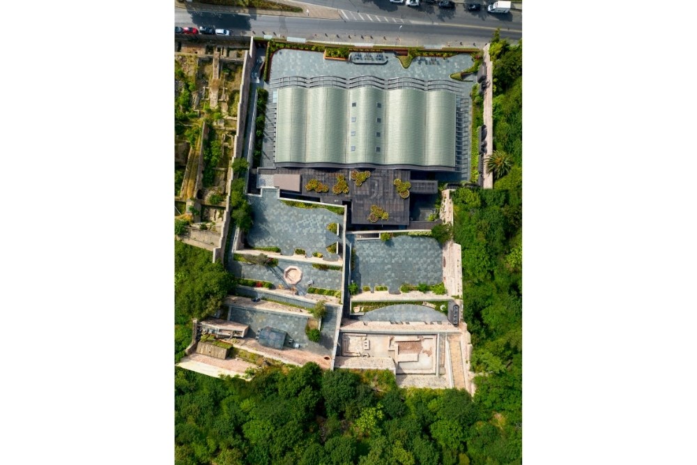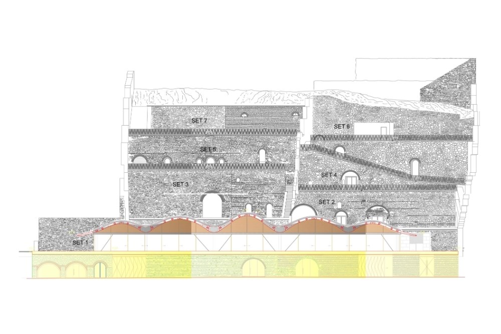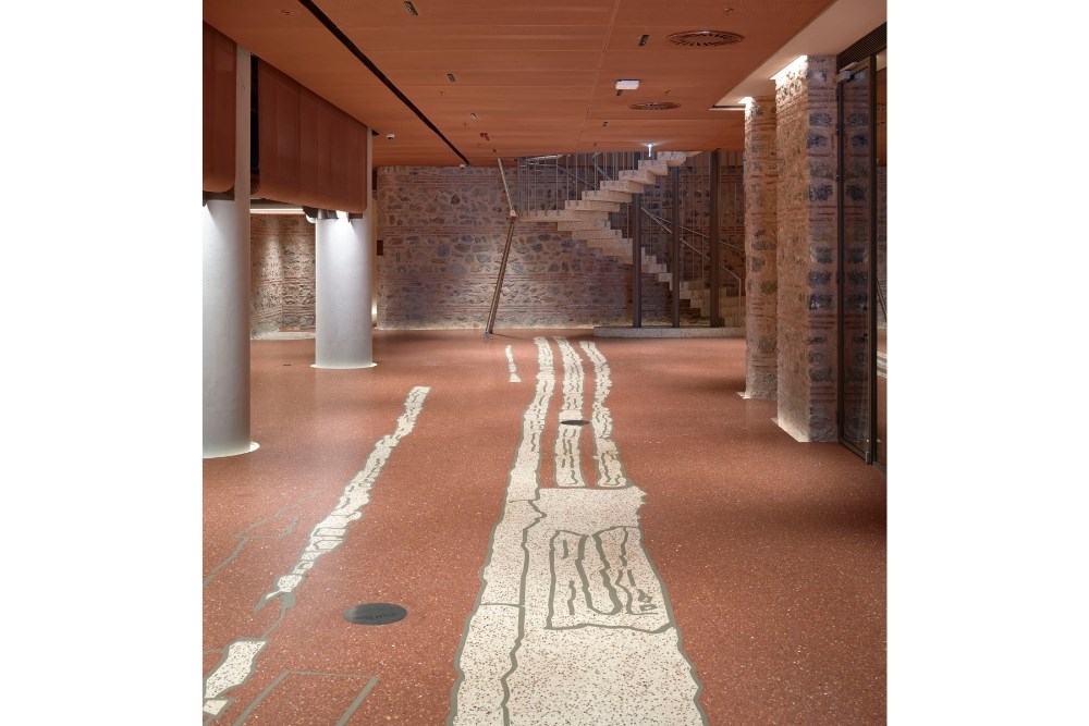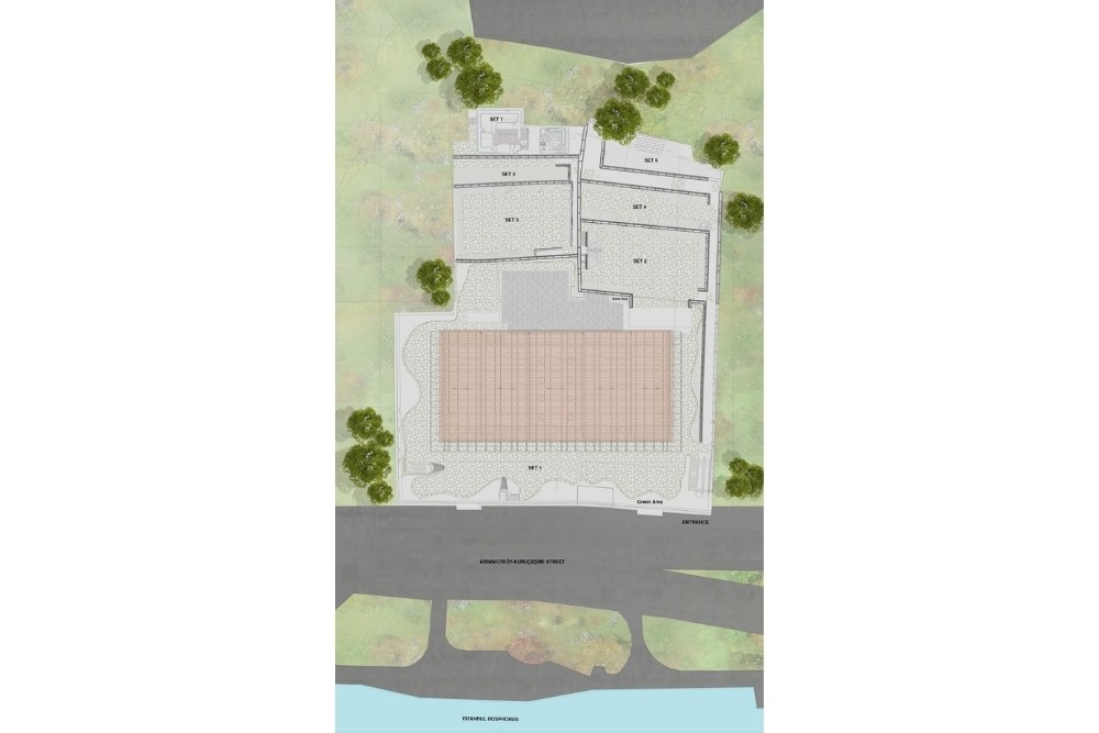 Büyük etkinlik salonunun tasarımında, mevcut tarihi duvarların oranları referans alınmış; bu duvarlar hem iç hem dış mekânda vurgulanarak tasarımın ayrılmaz bir unsuru haline getirilmiştir. Teknik hacimlerin çatıları yeşil teraslar olarak düzenlenmiş, böylece çevredeki yeşil dokunun sürekliliği sağlanmıştır. Çatı arasına yerleştirilen ışık bacaları, doğal gün ışığını iç mekâna taşımaktadır. İç mekândaki ahşap tavan kaplaması ise akustik dengeyi sağlamaktadır. Kullanılan malzemelerde sürdürülebilirliğe önem verilmiş, mümkün olduğunca yerel malzemeler ve kazılarda çıkarılan yapı taşları değerlendirilmiştir.