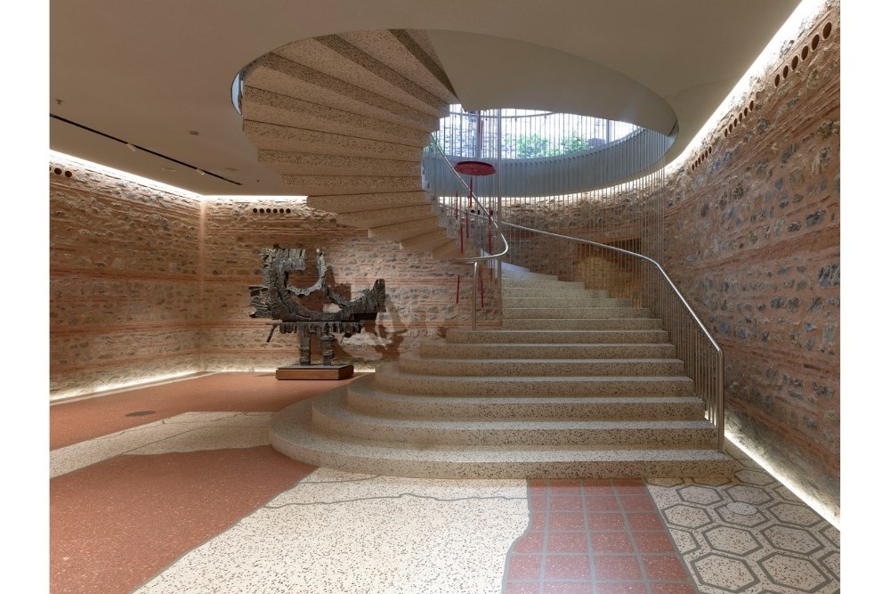 Çelik ve betonarme sistemin birleşimi, mekânsal ve strüktürel açıdan dinamik, modern bir mimari dilin oluşmasını sağlamıştır. Kazılar sırasında ortaya çıkarılan havuz, hamam ve çamaşırhane gibi eski yapı kalıntılarının izleri, giriş katındaki terrazzo döşemelerde desenler olarak yansıtılmıştır. Bu kalıntılar gün yüzüne çıkarılarak, üst teraslara taşınmış ve artık var olmayan “Divan Kuruçeşme Yalısı”nın geçmişine dair bir açık sergi niteliği kazanmıştır. En dikkat çekici şekilde, bir hamam yapısının temelleri mevcut konumunda korunmuş, çelik bir karkas üzerine alınarak ana balo salonunun zemininde cam taban altında sergilenmiştir. GAD, bu tarihsel kalıntıları — özellikle hamamı — hem koruyarak hem de görünür kılarak geçmişin izlerini mimari bir anlatıya dönüştürmüştür.