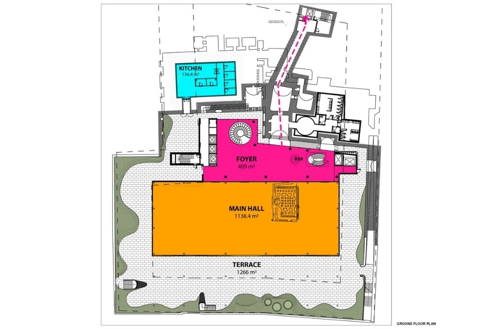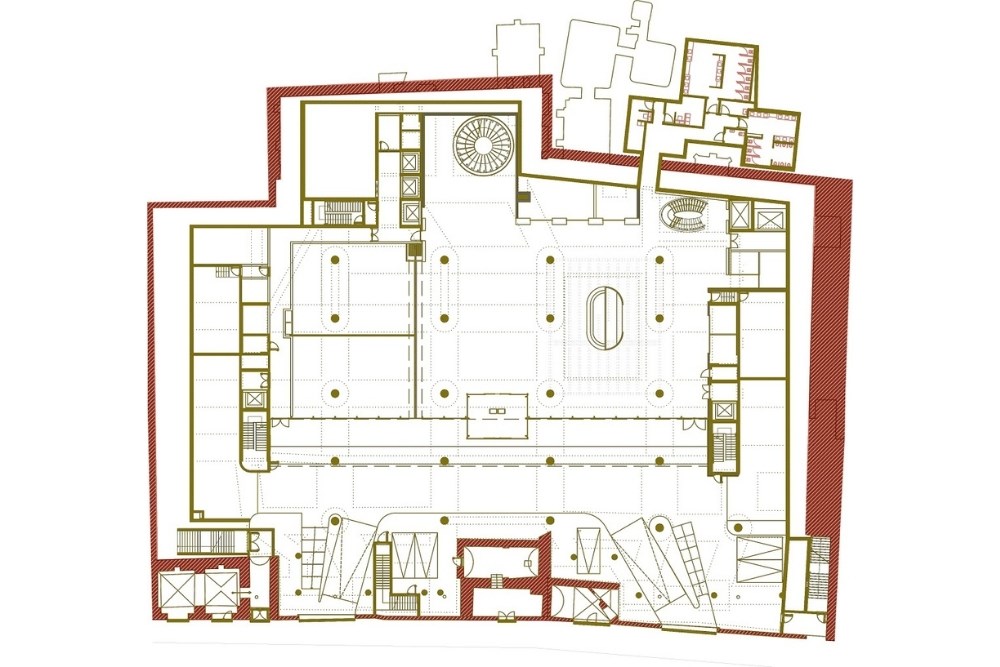 Ayrıca proje kapsamında deniz seviyesinin altında iki katlı otopark ve servis alanları da yer almaktadır. Trafiğin etkinlikler sırasında aksamaması için araç giriş-çıkış alanları yapının içine alınmıştır. Yapı içinde lobi, lounge, kokteyl, resepsiyon, sergi ve özel toplantı alanları bulunmaktadır. Tasarım sürecinde, özgün duvar ve tonoz gibi tarihi unsurların hem iç mekân hem de dış cephede algılanış biçimlerine özen gösterilmiş, bu elemanlar yeni işlevin bir parçası haline getirilerek aktif biçimde korunmuştur.