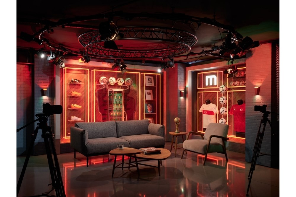 Stüdyo duvarlarında, kurumsal kimliğe uygun renk paleti ve mobilyalar, sıcak ve samimi bir atmosfer yaratırken, Maçkolik'in dinamik yayın çizgisine vurgu yapar. RGB LED'lerle aydınlatılan duvarlar, ışıklı masa ile birlikte renk değişimi imkanı sunar. Bu özellik, farklı programların aynı stüdyoda kaydedilmesine olanak tanırken içerik çeşitliliğini ve dinamizmini artırır.