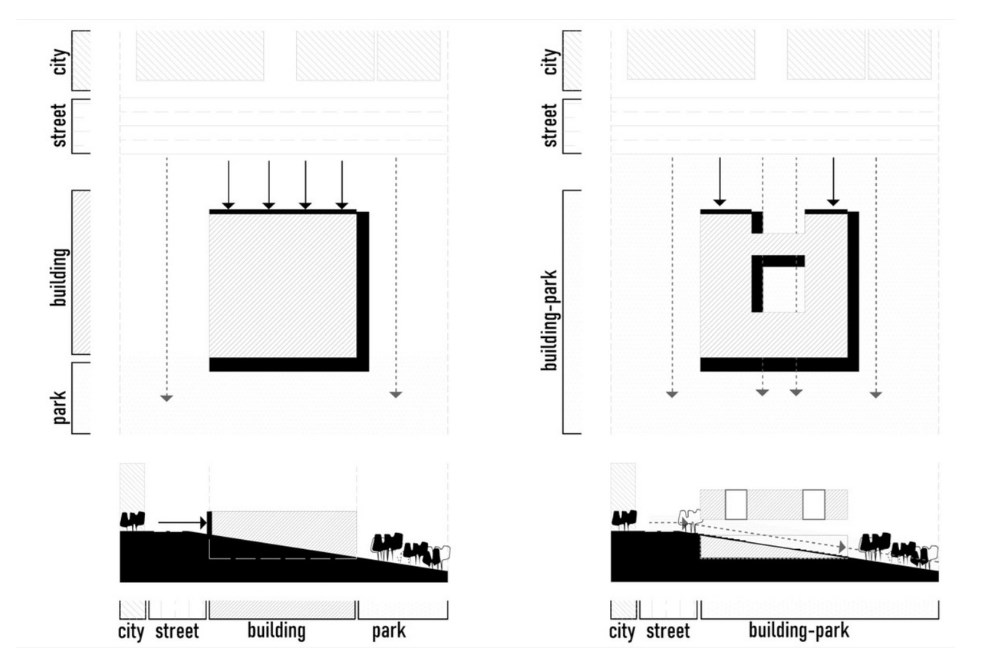 Projenin ana fikri, gençlik merkezinin kent parkının bir uzantısı gibi düşünülmesidir. Bu entegrasyon, parkın girişini engellemeden, gençlik merkezinin içinden kamusal bir sokakla parka bağlanmayı içerir. Arazideki doğal eğimleri kullanarak tasarlanan gençlik merkezi, kent parkına uyum sağlarken aynı zamanda parkın bir simgesi olma özelliği taşır. Şeffaf malzemelerle yapılan dış cephe, iç mekanı dış dünyayla bütünleştirir ve gençlik merkezindeki etkinlikleri dışarı taşır. Bu tasarım, gençlik merkezi ve kent parkını sadece fiziksel mekanlar olmaktan öte, çevreleriyle etkileşim içinde dinamik bir yapı olarak konumlandırır. Proje, kent yaşamını sosyal, kültürel ve eğitimsel açılardan zenginleştirerek başarılı bir şekilde hayata geçirildiğinde önemli katkılarda bulunacaktır.