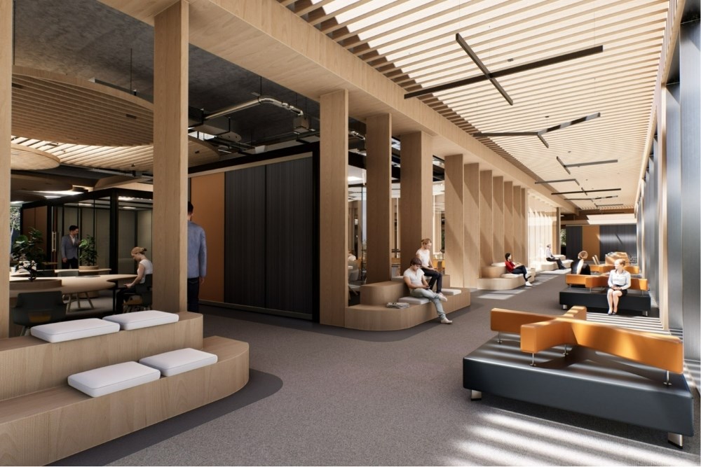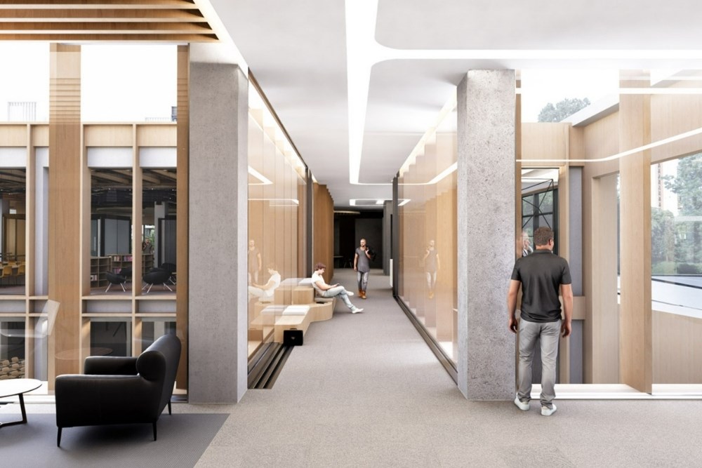 Üst katlarda yer alan restoran, gençlerin ve kent sakinlerinin buluşma noktası olacaktır. Geniş pencereler ve teraslar, çevre manzarasını içeri taşıyarak kent ve parka hakimiyeti vurgular. Kütüphane ise, üst katlarda parka bakan bir konumda yer alacak şekilde tasarlanmıştır. Şeffaf cam duvarlar, doğal ışığın bolca kullanımına imkan tanırken, park manzarasını içeri taşımayı hedefler. Ortak çalışma alanları, dinamik ve yaratıcı bir ortam sunmak üzere düzenlenmiş olup, geniş pencereler ve teraslar ile kent ve park manzarasına entegre edilmiştir.