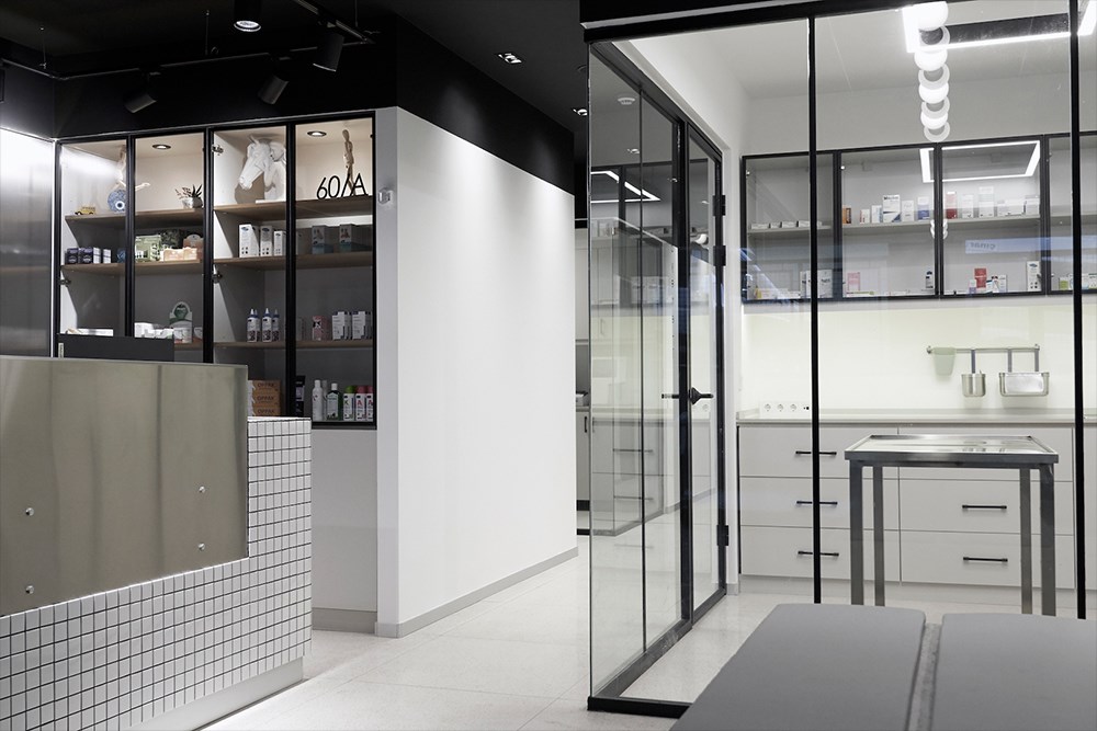 Sunulan fonksiyonların yanı sıra kapıdan girildiğinde ana mekanda misafirleri karşılayan muayene odası şeffaflaştırılarak hayvan severlere patili dostları muayene olurken onları izleyebilme fırsatı sunuldu.