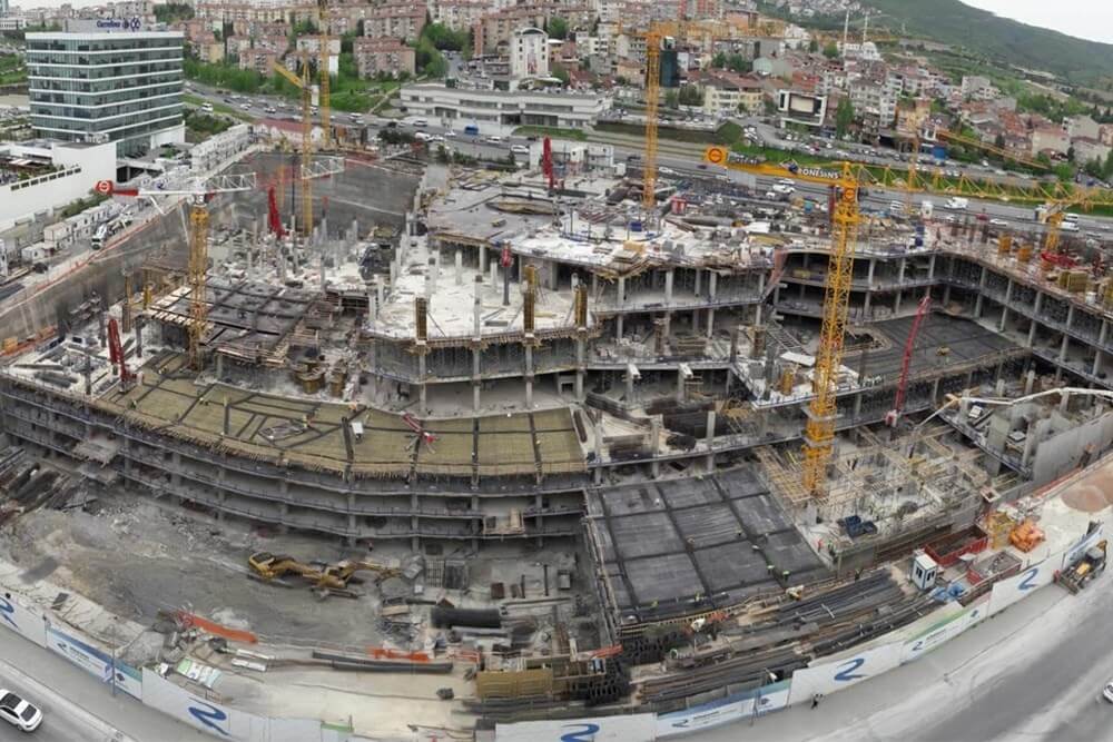 AVM bloğu için; 14.000 m² HD 150 sistem döşeme kalıbı (İskele uygulaması, H20 üzeri H20), 468 m² PANEMAX perde kalıbı, 530 m² İNTEVA perde-kolon kalıbı verilmiştir.