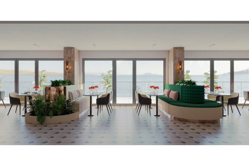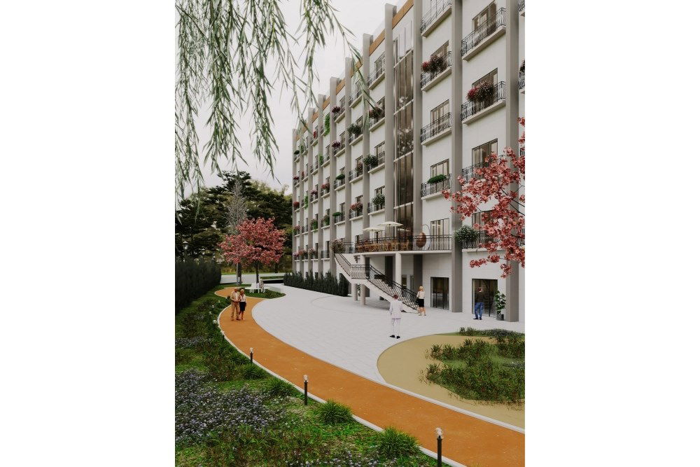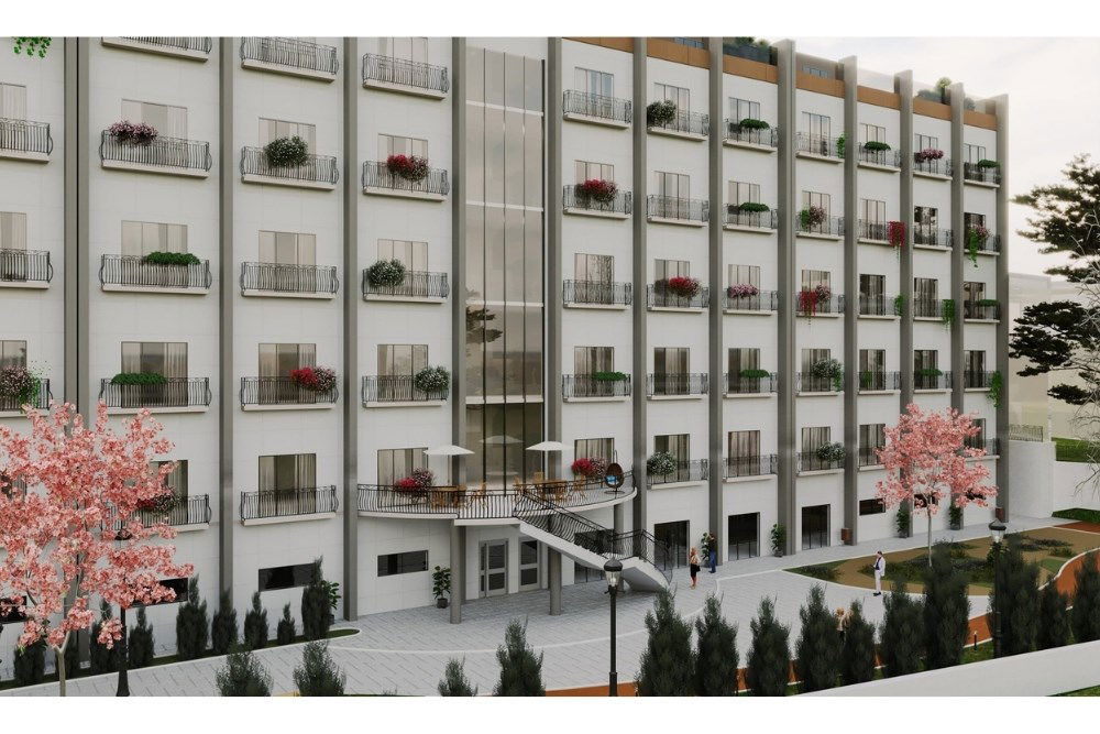 Proje alanı denizi direkt gören bir konuma sahiptir. Yapı; birçok cami, lokanta, banka gibi yerlerin bulunduğu merkeze yaklaşık 15 dakika yürüme mesafesinde yer almaktadır. Oldukça eğimli bir topoğrafyaya sahip olan alanda, mevcut durumda üzerinde Kızılay’a ait yaşlılar konuk evi binası bulunmaktadır. Tasarlanan yapının mevcut olanın yerine inşası planlanması sebebiyle, projede mevcut arazi kotlarına mümkün olduğunca uyum sağlanmıştır. Yapı dikdörtgen plana sahiptir. Konuk odalarının ağırlıklı olarak deniz manzaralı kuzey cephesine bakması sağlanmıştır. İdari ve ortak mahallerin yerleşiminde koridor sürekliliğinin kesilmesi amaçlanarak ortada dairesel bir alan oluşturulmuştur. Proje, imar durumuna uygun olarak bodrum+zemin+4 katlı olarak organize edilmiştir.