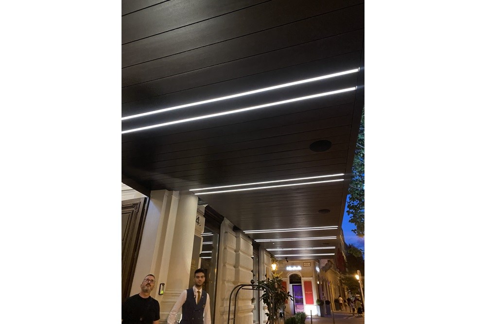 Yenileme kapsamında, iç avluda kullanılan Technowood profiller mekâna doğal ve sofistike bir estetik kazandırırken, otelin tarihî dokusuyla uyumlu sıcak bir görünüm sundu. Alanın mimari bütünlüğünü destekleyen büyük pergola yapıları, sadece gölgelendirme işleviyle değil, aynı zamanda mekânsal tanımlayıcı olarak da öne çıkıyor; kullanıcıya hem konfor hem de görsel zenginlik sağlıyor.