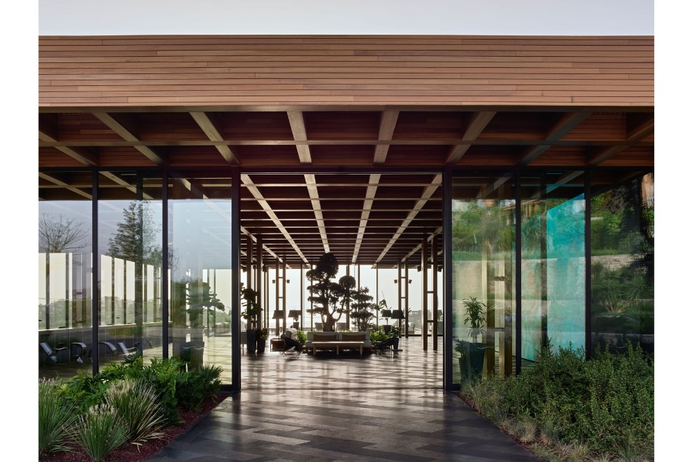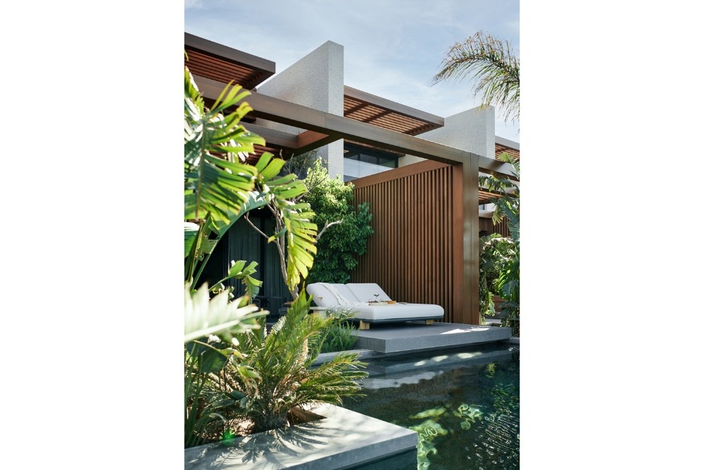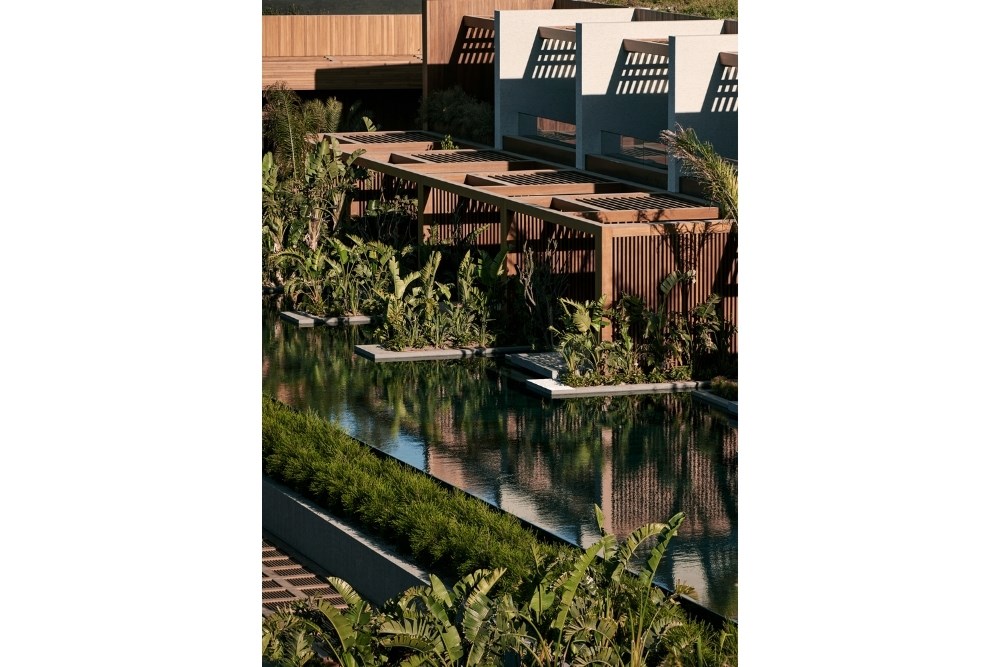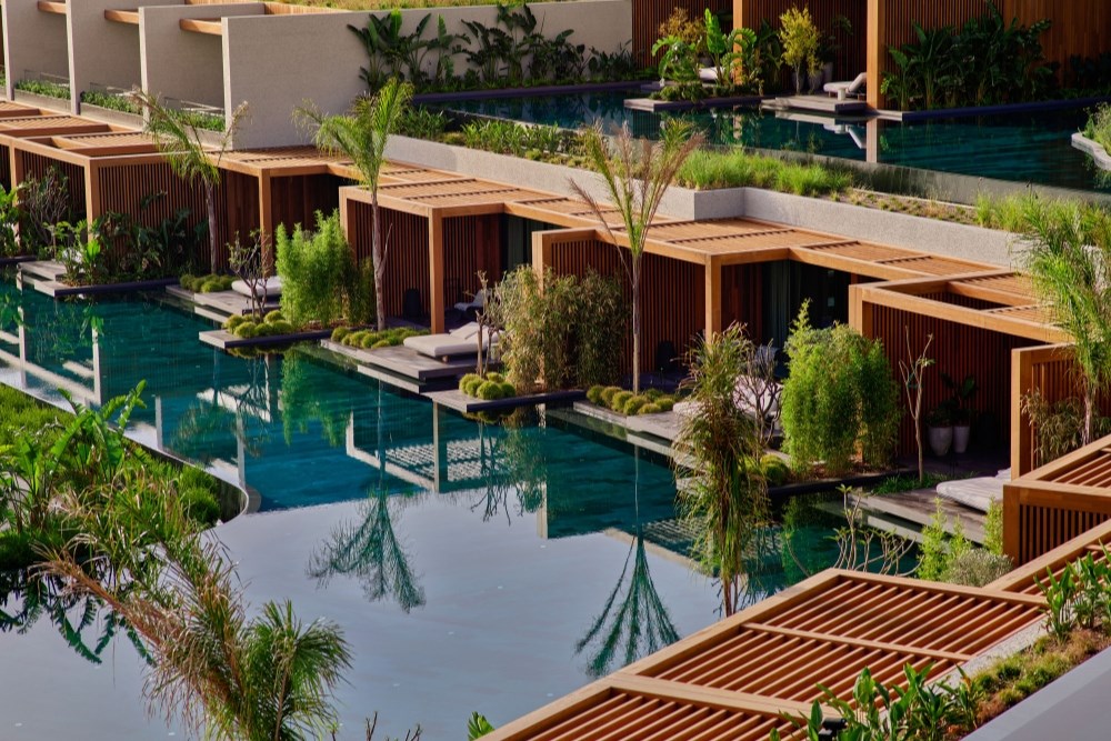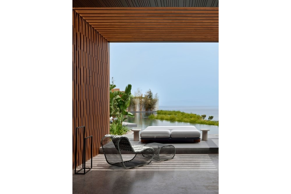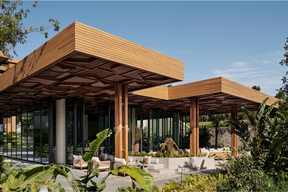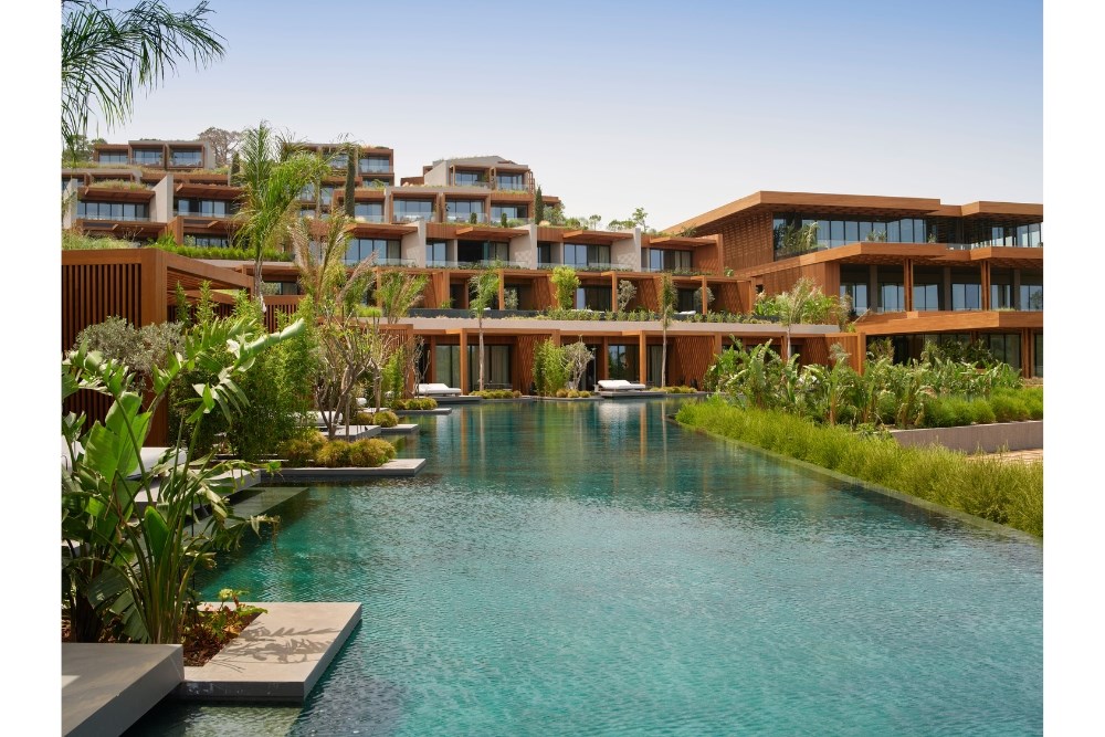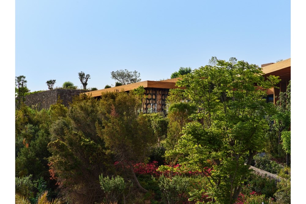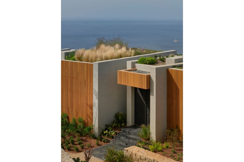 Çevresel etkiyi en aza indirmek için saçaklar ve gölgeleme sistemleri gibi pasif iklim kontrolü elemanları kullanılıyor. Konaklama birimleri ise Ege yaşam pratiğini yansıtan, parçalanmış ve dokusal bir mimari anlayışa sahip. Tesis; süitler, lagün odaları, aile odaları ve villalardan oluşan toplam 287 anahtar kapasitesiyle mahremiyet ve sosyal alan dengesini sağlıyor. Merkezdeki lagün alanı, geleneksel 'havuz' konseptini bir 'koy' anlayışına dönüştürerek sürdürülebilir tasarım ilkelerine uygun şekilde planlanmış ve LEED Platinum sertifikası hedefleniyor. Mevcut malzemelerin %95’i yeniden kullanılarak ve bitki biyoçeşitliliğine öncelik verilerek çevre dostu bir yaklaşım benimseniyor. Yeşil çatıların entegrasyonu ve verimli su sistemleriyle doğal bağ güçlendirilirken çevresel sürdürülebilirlik de ön planda tutuluyor.