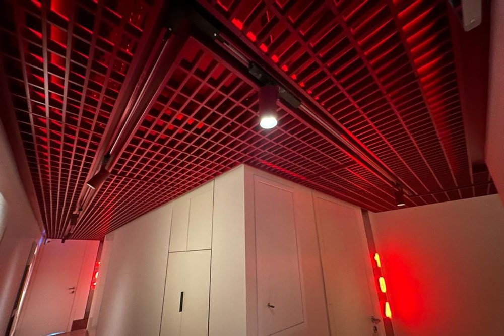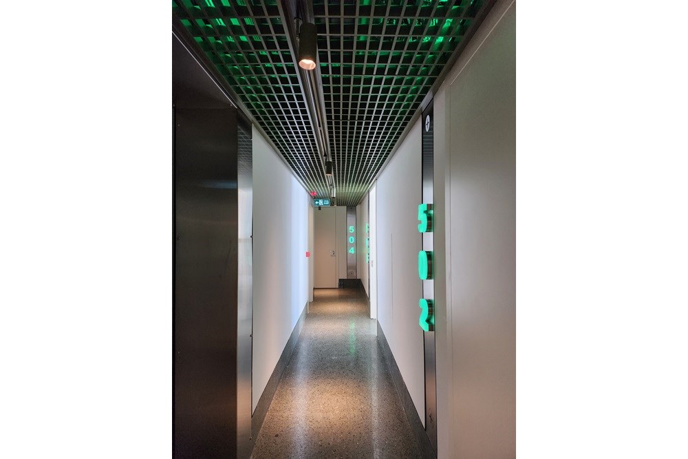 Projede Metaloop elektrostatik toz boyalı, 50x100mm aks aralıklı 0,8mm alüminyum paneller kullanılmıştır.