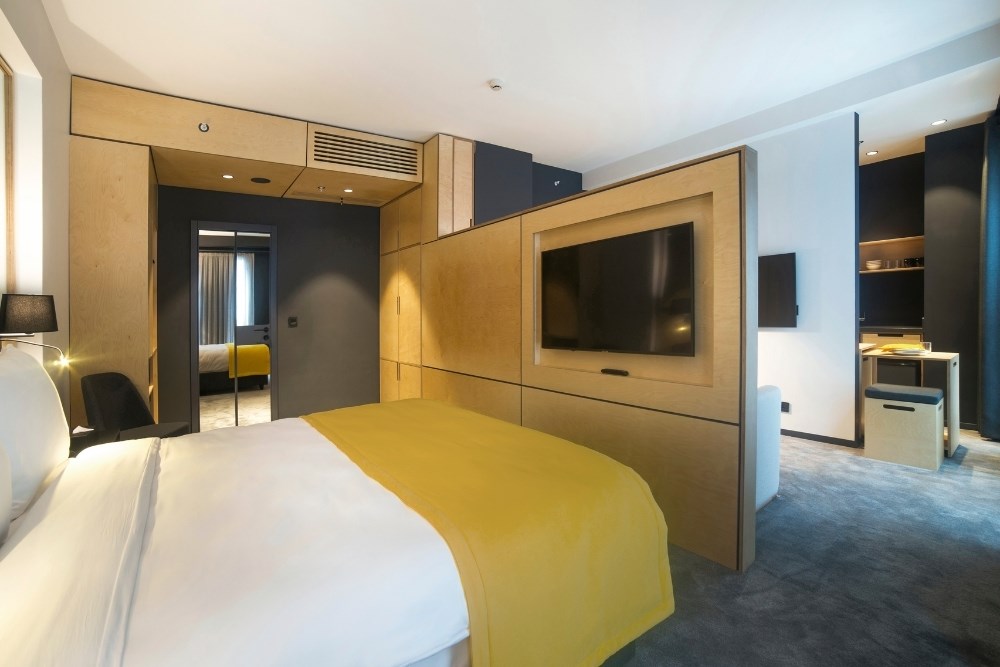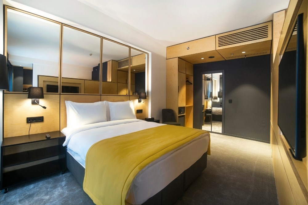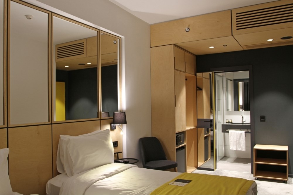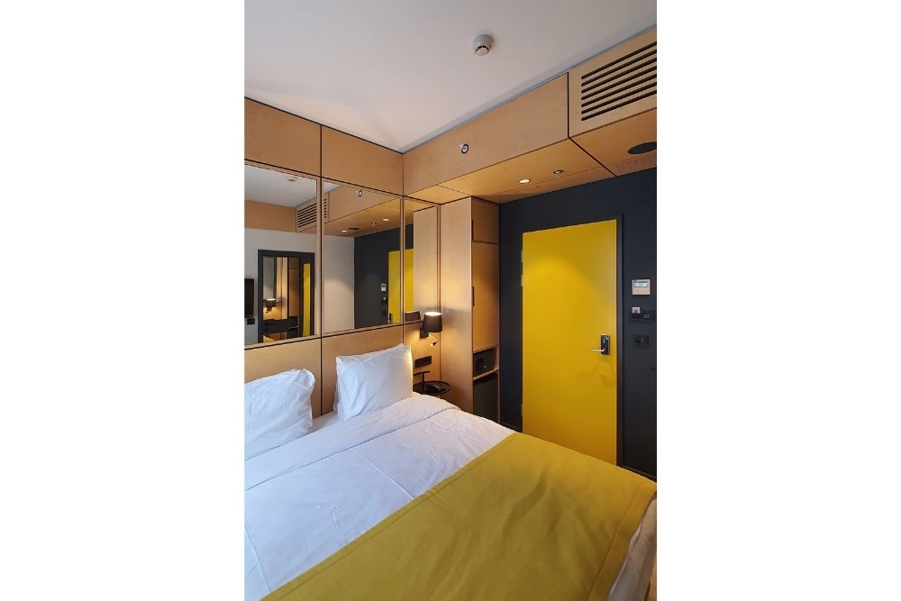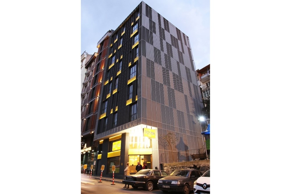 Genellikle kısa süreli konaklanacak bir tesis olmasından dolayı mimarinin baskın rengi olarak “taksi sarısı” seçilmiştir. Sarının cephedeki metal doku ile zıtlık oluşturması ve otelin dikkat çekici kurumsal kimliğini desteklemesi hedeflenmiştir.