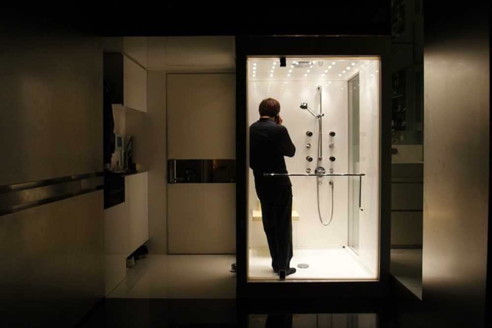 Alan, Hong Kong'ta en pahalı şey durumunda. Bu nedenle mimar Gary Chang sürgülü duvarlara dayalı eşsiz bir sistem geliştirerek, 32 m2'lik bir alanda 24 farklı oda fonksiyonuna uyum sağlayan çeşitli kullanım alanları yarattı. Bu sistemle Chang, mobilyayı iki eksende hareket ettirilebilir duvar modüllerinin içine gizledi. Chang'in bu çok özel projesinde Duravit ürünleri de yer aldı.