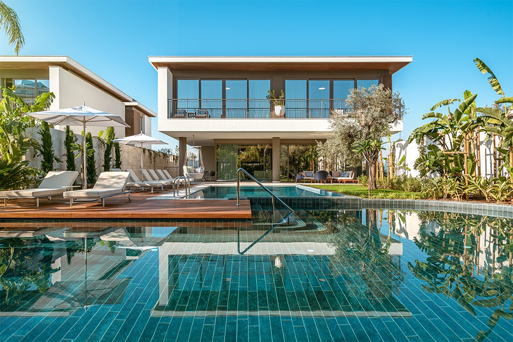 250 m2 ile 1.000 m2 arasında değişen alan üzerinde 1, 2, 3 ve 4 yatak odalı villaların her birinin kendine ait özel bahçesi ve tatlı ve tuzlu sulu yüzme havuzları bulunmaktadır.