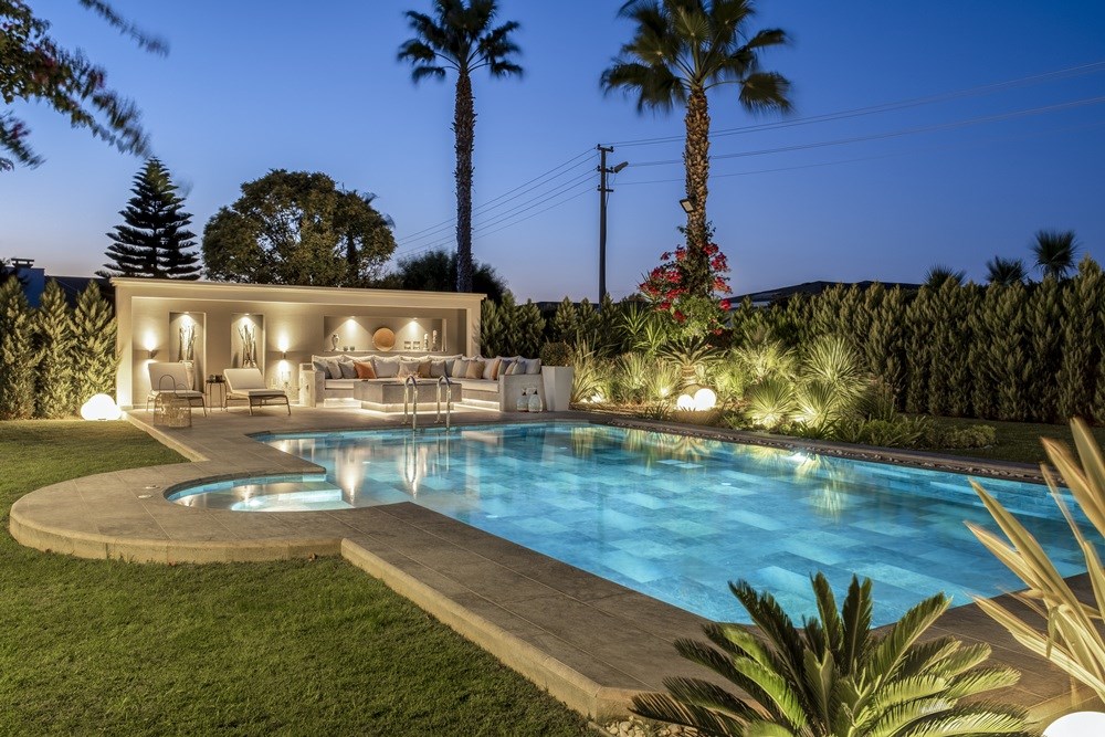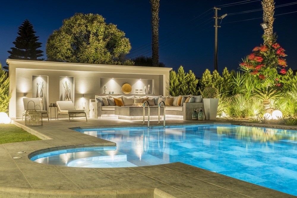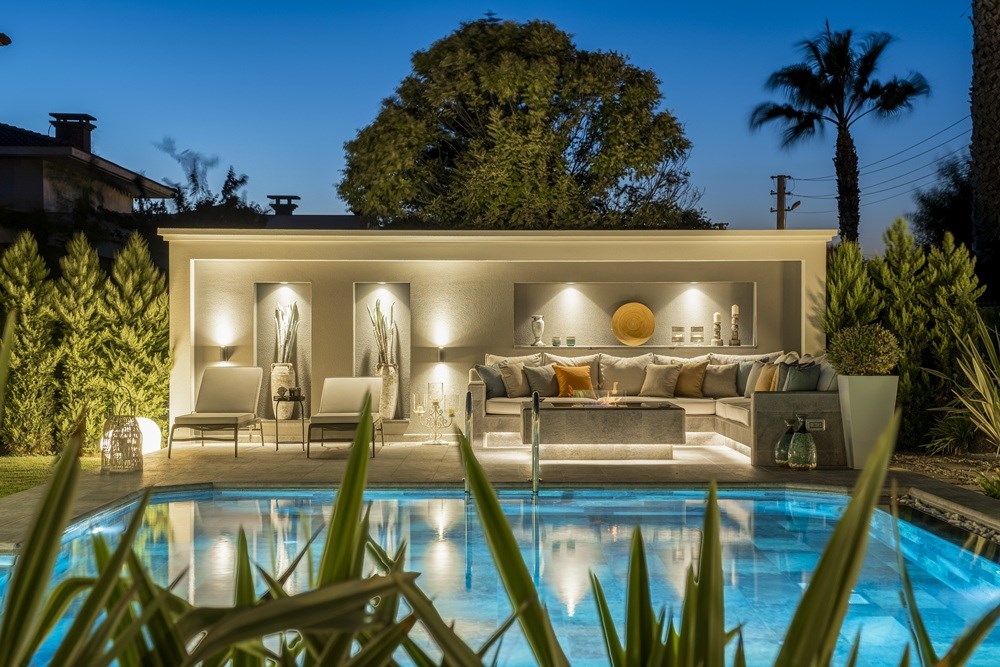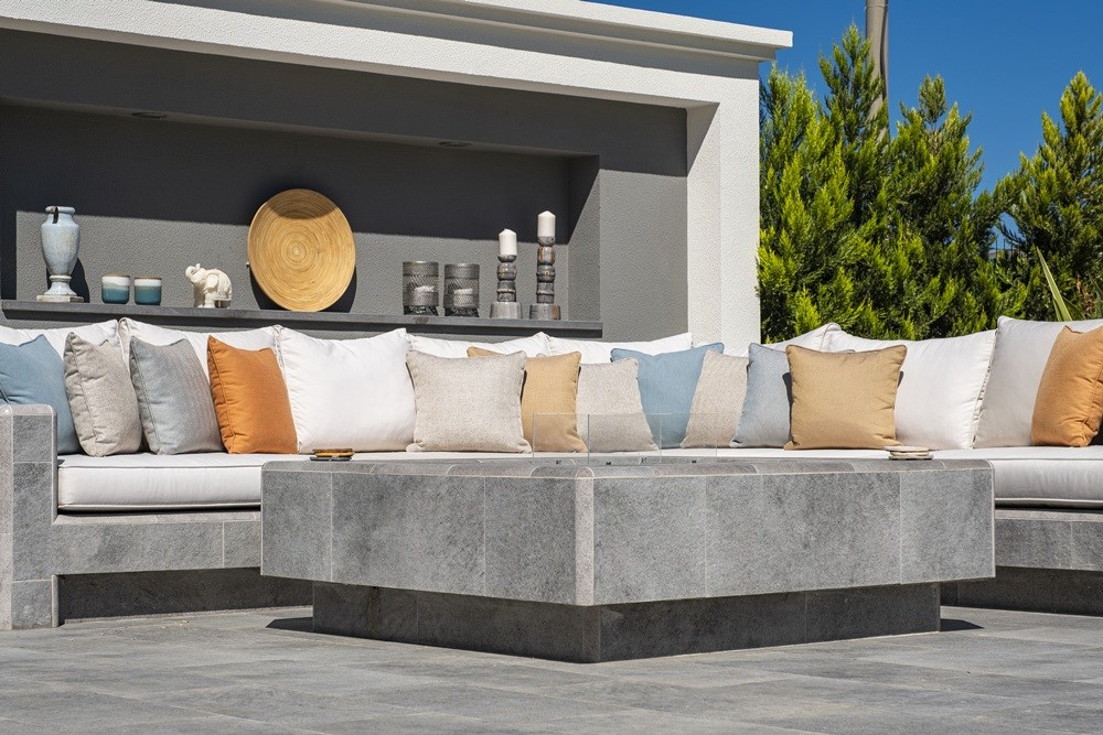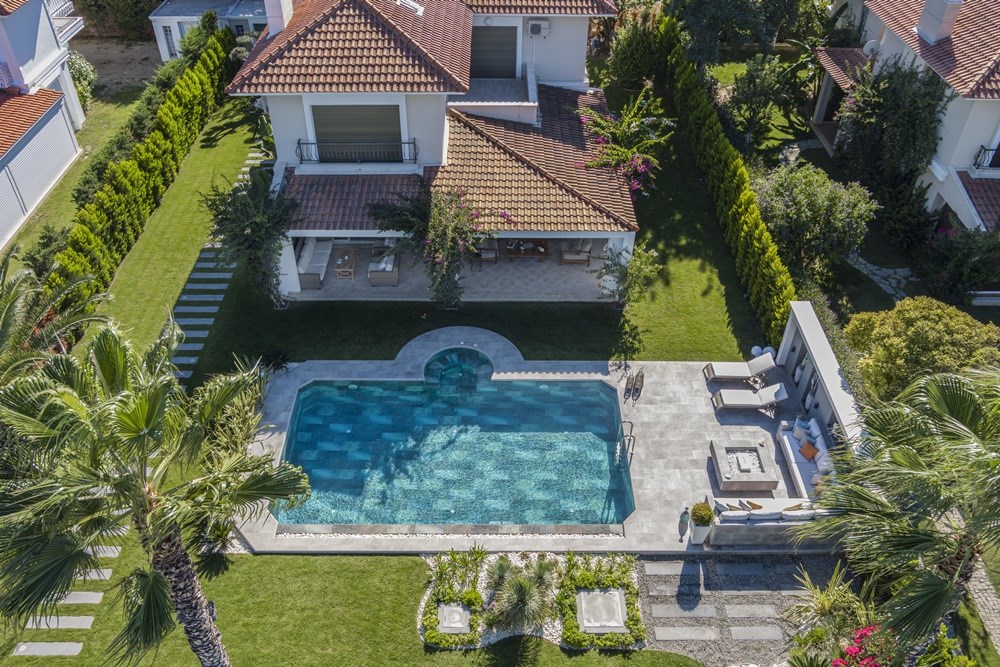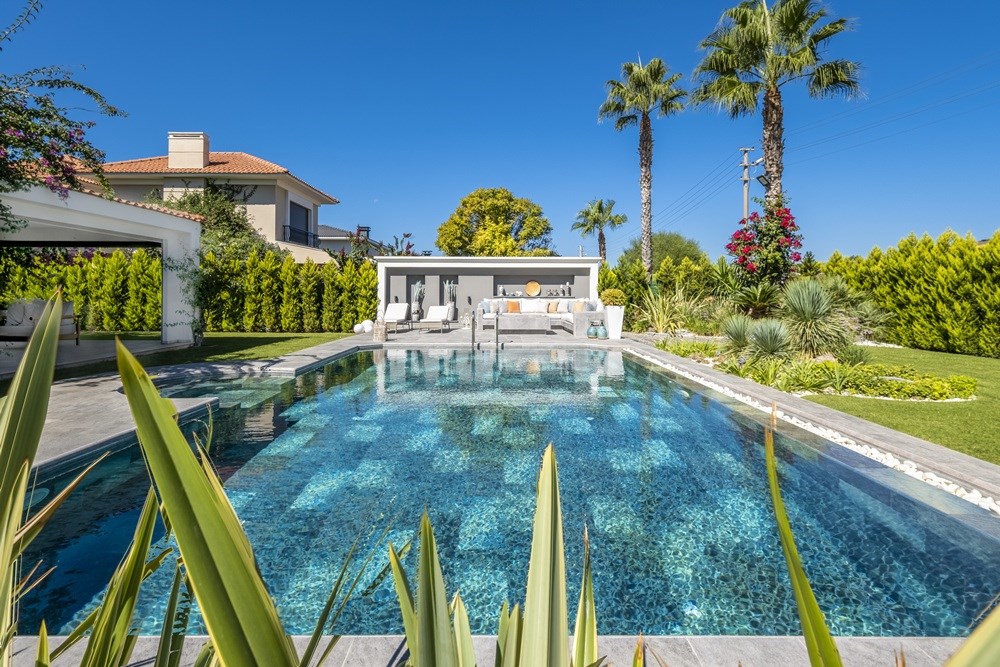 İzmir Çeşme’de hayata geçirilen villa projesinde, havuz içinde Natural Seri’nin Olcay Mix ürünleri tercih edilirken; teraslarda ve havuz başındaki sabit oturma alanında Pool Garden Grey kullanılarak hem estetik hem de işlevsel bir bütünlük sağlandı. Projede oluşturulan sabit oturma alanı, yazlık evlerde sıkça karşılaşılan bahçe mobilyalarının depolanması sorununa pratik bir çözüm sunmasıyla dikkat çekiyor. Bu uygulama sayesinde kullanıcılar, alanı diledikleri zaman kolayca temizleyip minderlerini yerleştirerek kısa sürede kullanıma hazır hale getirebiliyor.