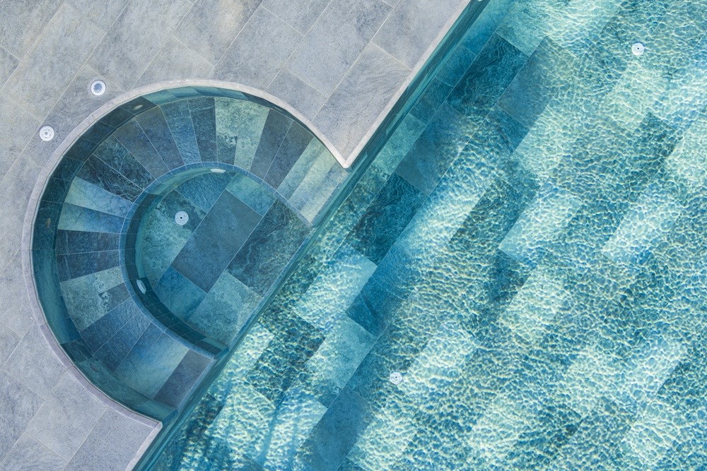 Oturma grubunda kullanılan dışbükey ve içbükey parçalar ile teras kaymazları, hem temizliği kolaylaştıran hem de güvenlik, konfor ve estetik açısından avantaj sağlayan bir yapı ortaya koyuyor. Havuz içerisinde Olcay Mix’in dört farklı face’inin bir arada kullanılması ise projeye özgün ve karakter sahibi bir görünüm kazandırıyor.