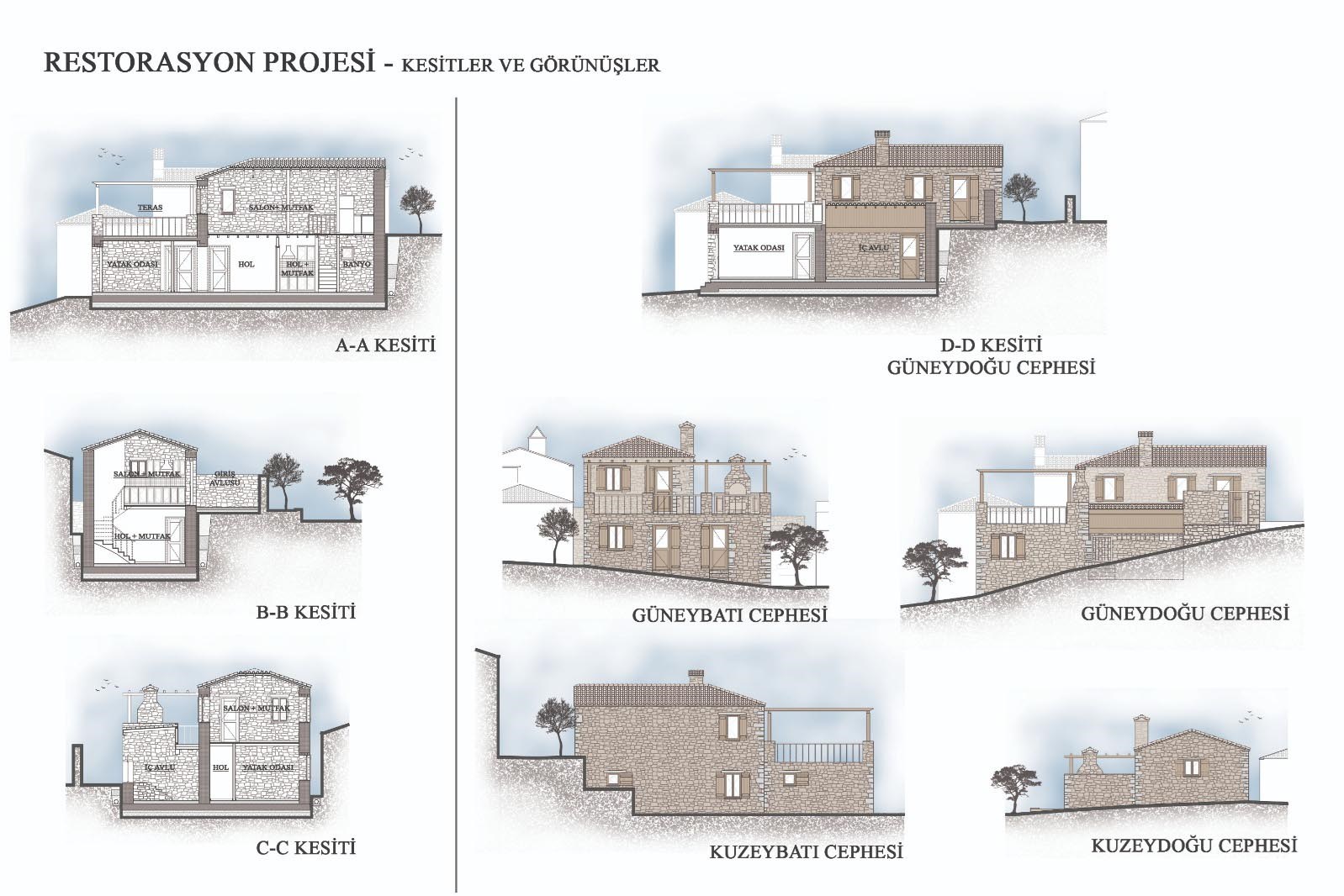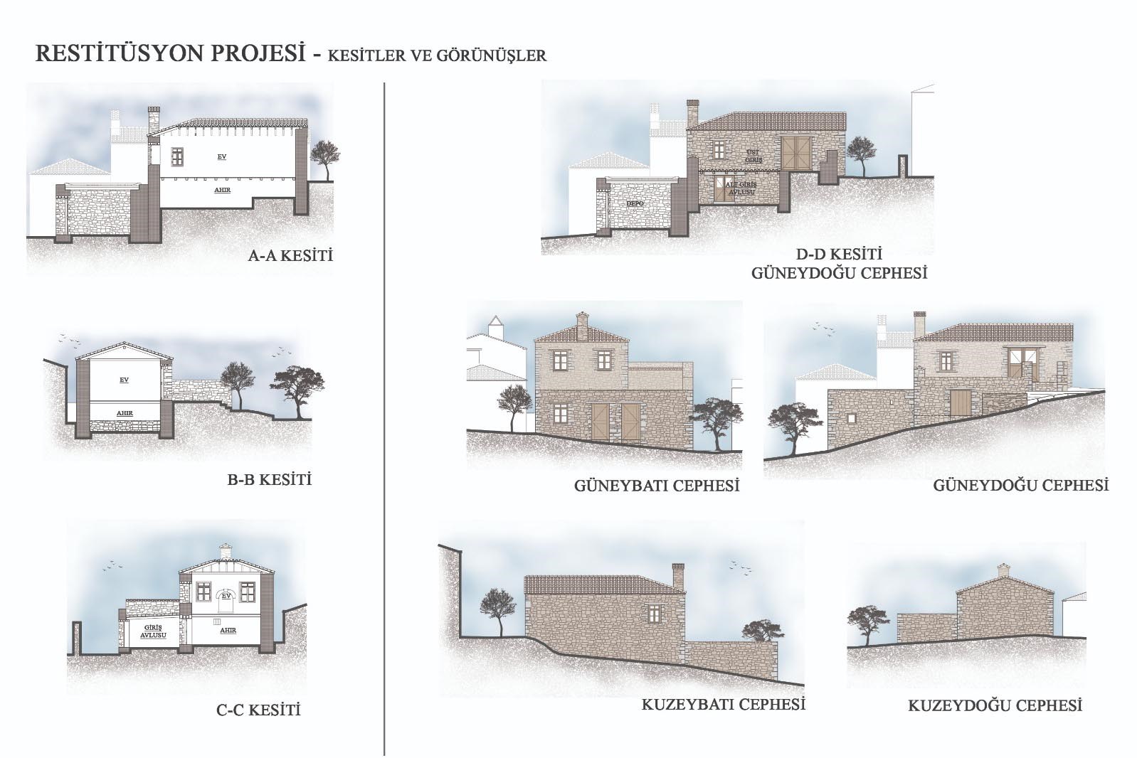 Yapının rölövesi, güncel verileri ve mimari gözlemler üzerinden restitüsyon projesi ve ardından konut işlevli bir restorasyon projesi hazırlanmıştır. Evin birinci katı, özgün plan şemasına sadık kalınarak açık tek bir mekan olarak tasarlanmış, zemin kat ile bağlantının sağlanması için ahşap bir merdiven konumlandırılmıştır. Güneybatı cephesinde bulunan bir pencerenin kapıya dönüştürülmesi önerilerek üzerinde yürünebilir bir terasa çıkış sağlanmış, teras ile yapının birinci kat girişi bağlanmıştır. Evin zemin katına, geçmişinde olduğu gibi bir sundurma ile geçiş yapılarak ahşap sundurmanın altı bir iç avlu olarak değerlendirilmiştir. Zemin katta içeriden evin yatak odalarının bulunduğu tek katlı bölüm ile bağlantı sağlanmış, alt terasla ilişkili bir mutfak yerleştirilmiştir.