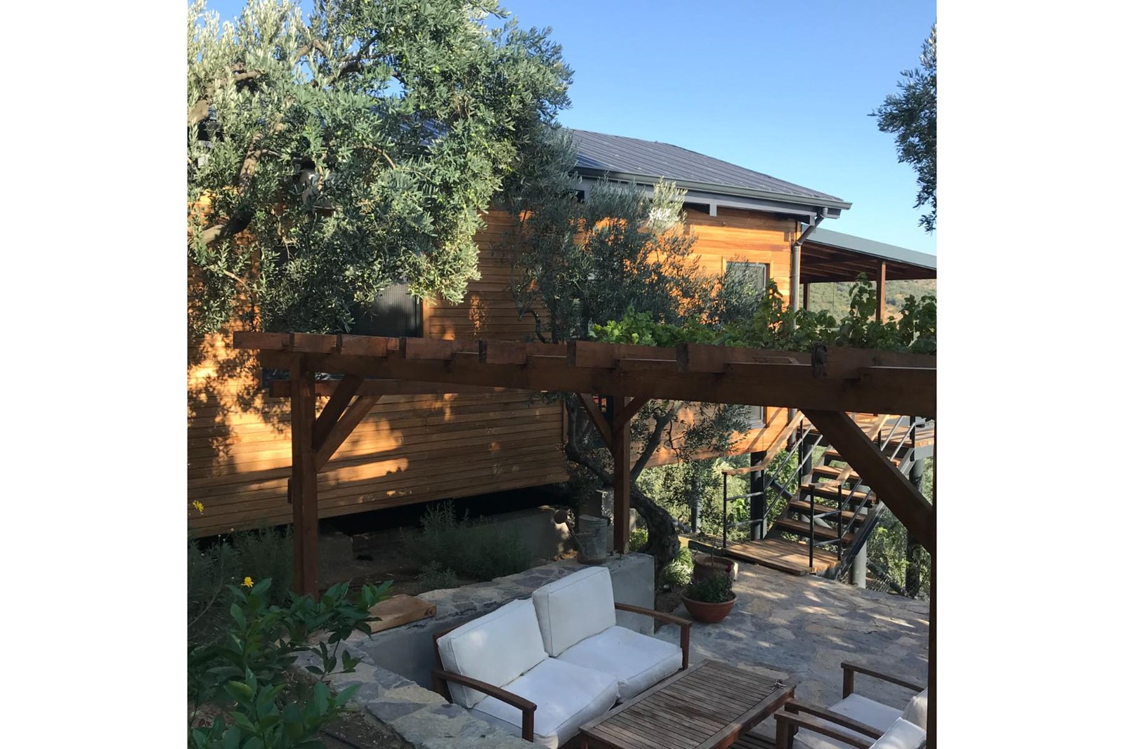 Proje, zeytin ağaçları ve deniz manzarasına sahip bir Kuzey Ege kasabasında gerçekleştirilmiştir. Zeytin ağaçlarının konumuna göre şekillenen kütle çevresiyle uyumlu, çelik ve ahşap kaplı olarak tasarlanmıştır. Kullanıcısının isteğine göre yüksek tavan ve kişiye özel iç tasarıma sahiptir. Bir oda ve açık mutfaklı bir yaşam alanından oluşan evde kişiye özel fonksiyonel çözümler üretilmiştir.