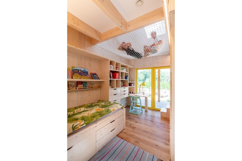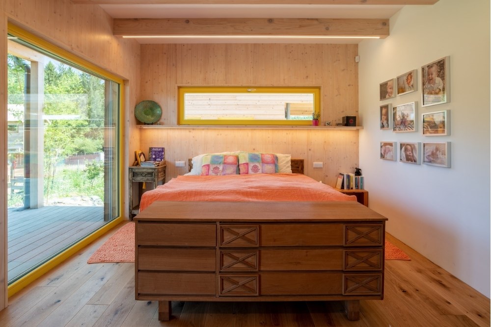 "We wanted a wooden facade, but it seemed strange to us that the windows would also look wooden or metal. That's why we came up with the color yellow. I entered a house with yellow windows into the search engine to make sure it wouldn't look terrible, and after a few pictures, a wooden building from 3AE popped up. So it was a rather strange start, but in the end it was an excellent choice," says Květa.