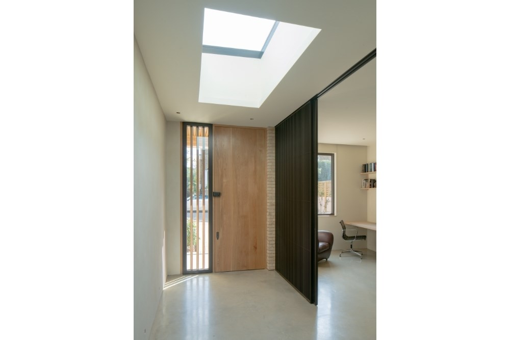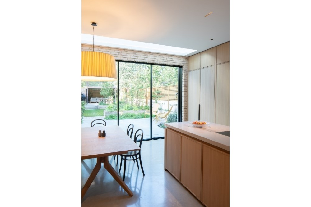 Londra’nın kentsel koruma alanında konumlanan, geleneksel İngiliz sokak dokusuna çağdaş bir yaklaşım getiren modern bir konut projesidir. Zorlu bir izin sürecinin ardından, mevcut müstakil ev yıkılarak yeniden inşa edilmiştir. Bu yenilikçi tasarım, çevresindeki Viktorya dönemi yapılarına saygı gösterirken, caddeye modern bir bakış açısı kazandırmakta ve çevredeki mimari dokuya çağdaş bir dokunuş katmaktadır. Sokak, tarihi süreç boyunca gelişen ve birbirinden farklı tasarım stillerini içeren iki veya üç katlı Viktorya ve Edward dönemi sıra evleri veya müstakil yapılardan oluşmaktadır. Bu binalar, ölçek ve tasarım açısından çeşitlilik gösterse de tuğla detayları, kapı ve pencere işçiliği ortak bir dil oluşturmaktadır. Frame Evi, bu ortak dile uyum sağlayan ve aynı zamanda modern çizgiler sunan bir tasarıma sahiptir.