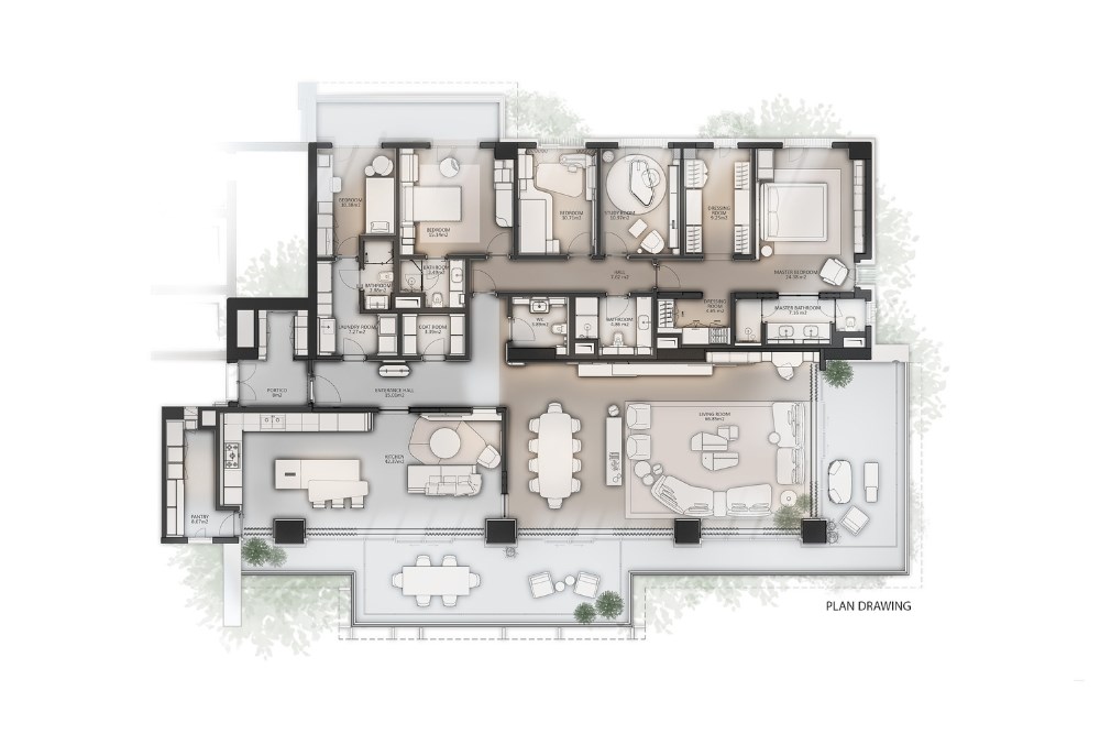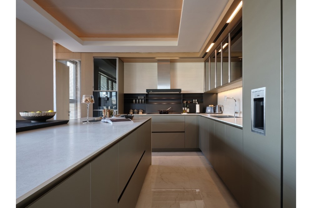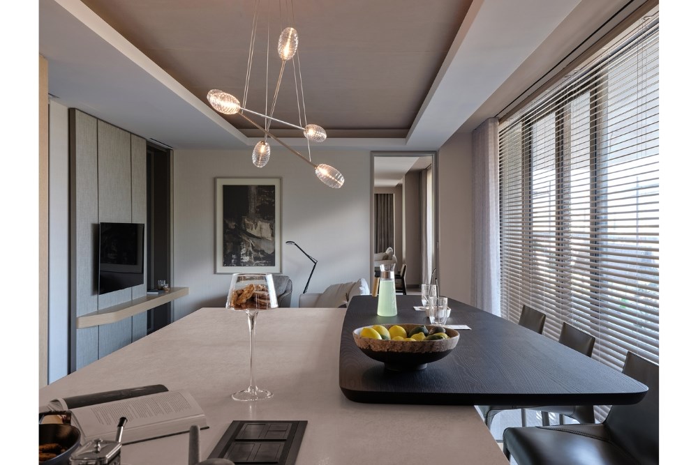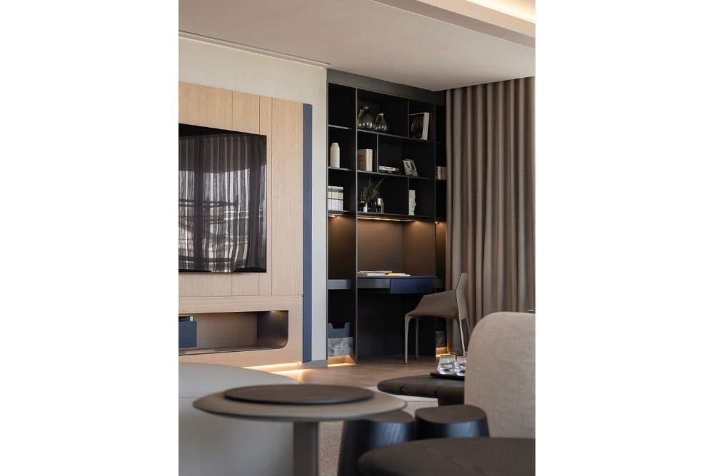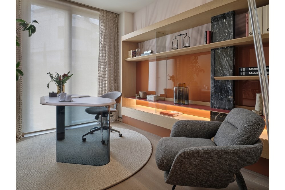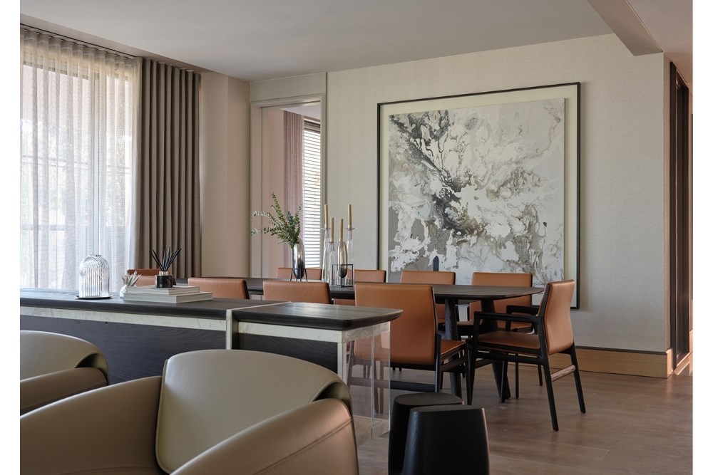 Dairenin genelinde, üretim kalitesi gelişmiş tekniklerle bir üst seviyeye taşınıyor. Kavisli alçı tavanlar ve özel marangozluk işçiliği gibi detaylar, bölgede kalite standartlarını yeniden tanımlıyor. Çalışma ve yaşam alanlarında taş, deri ve ahşap gibi malzemelerin özenle seçilmiş kontrastları mekâna derinlik ve zarafet katarken, stratejik biçimde yerleştirilen dekoratif unsurlar mekân içinde odak noktaları oluşturuyor.