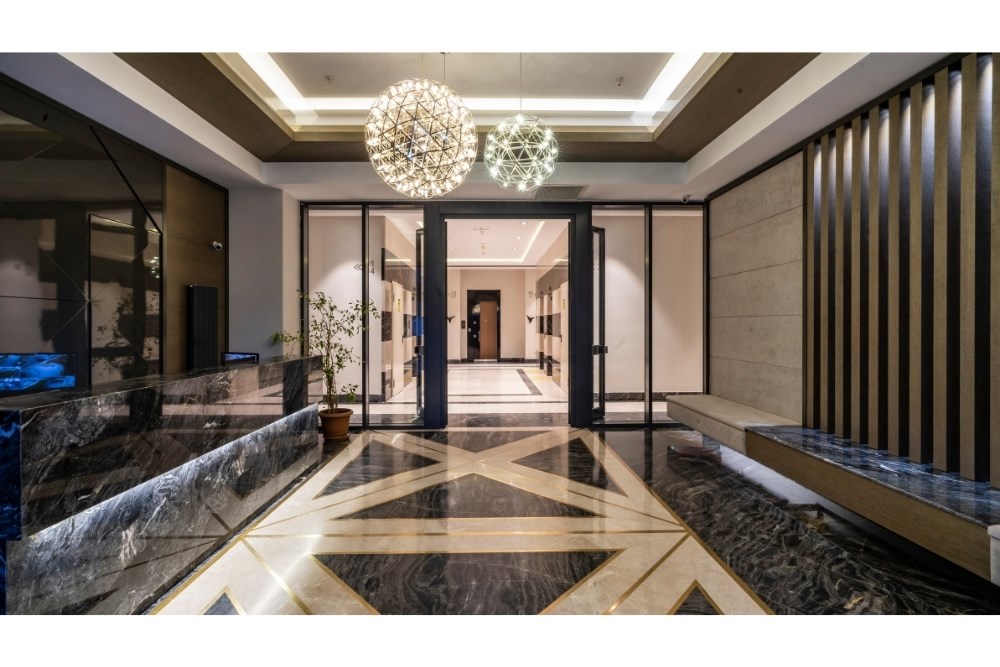 Bina genel parsel eğimi sebebiyle ortaya çıkan kot farkı, bahçede teraslama yapılarak çözülmüştür. Açığa çıkan 1. bodrum katında da kapalı havuz, spa-fitness gibi sosyal alanların ışık alması sağlanmıştır. Ayrıca 1. bodrum katından direkt irtibatlı arka bahçe, açık havuz ve spor alanları planlanarak kullanıcının kapalı ve açık sosyal aktivite alanları birbiriyle bağlanarak güçlendirilmiştir.