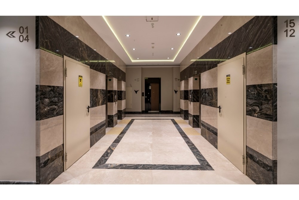 Modüllerin ıslak hacimlerinin tamamı iç koridor cephesine verilerek, tüm modüller ve içerisindeki her oda dört ana cepheye bakacak ve dairelerin hiçbiri birbirini görmeyecek şekilde planlama yapılmıştır. Her kat planında değişken olan daire yerleşimleri sebebiyle oluşabilecek, tesisat şaftlarının yerleşim problemi de; her katta daire giriş koridorlarında yer alan ve tüm iç koridor boyunca devam eden 80cm'lik şaft planlamasıyla çözüme ulaştırılarak, bina konforu ve direk ulaşım sağlanmıştır. Ayrıca iki hat olarak belirlenen kat hollerini cepheye bağlayarak, tüm kat hollerine ışık girişi sağlanarak, daha konforlu ve direkt temiz hava girişi olan bağlantı koridorları oluşturulmuştur.