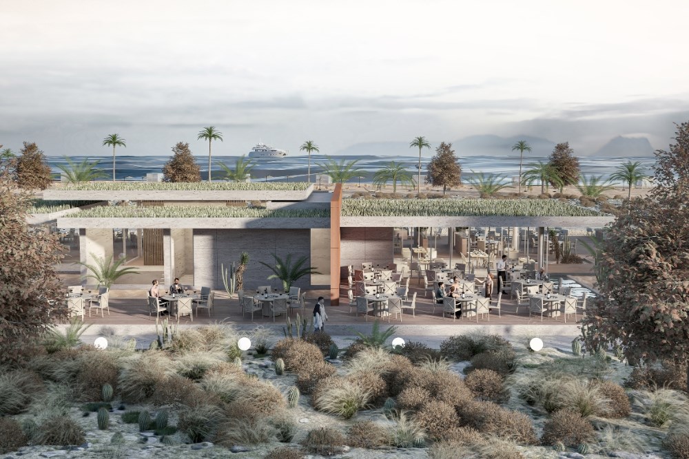 Binalar manzaradan maksimum fayda sağlamak ve iç-dış arasındaki geçirgenliği güçlendirmek için geniş şeffaf yüzeylere sahiptir. Geniş açıklıklar nedeniyle güneşin rahatsız edici etkilerine daha fazla maruz kalınacağından buna çözüm olarak geniş saçaklar tasarlanmıştır. Bina sınırının dışına taşan çatılar ve yarı geçirgen elemanlarla gölge sağlanan alanlar sayesinde iç ve dış mekanların bütünlüğü desteklenmiştir. Cephe tasarımını desteklemek için yatay platformlarda işlevlerine göre çeşitli malzemeler kullanılmıştır. Kapalı hacimlerin çatıları yerel bağlama uyacak şekilde düz olarak tasarlanmıştır. Bu düz çatılar genellikle sürdürülebilir ve doğal yalıtım sağlayan yeşil çatılardır. Alt kotlarda bu hacimleri birbirine bağlamak için tasarlanan dış mekan gölgeliklerinde doğal ahşap tercih edilmiştir. Ayrıca villa çatılarında deniz manzarasına hakim, etkileyici bir dış mekan olarak havuz tasarlanmıştır. Buradaki su öğesi de yalıtımı desteklemeye yardımcı olmaktadır.
