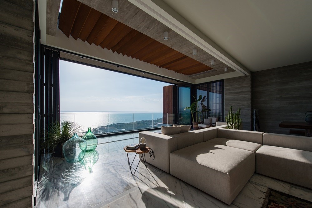 Katlanır ve sürgülü pencere sistemleri, iç ve dış mekanlar arasındaki sınırları ortadan kaldırarak dönüştürülebilir yaşam alanları sunar. 8 metrelik konsol ise evin çevresiyle olan ilişkisini yeniden tanımlayarak açık alanları maksimum düzeye çıkarır. Bu tasarım hamlesi, hem manzarayı ön plana çıkarır hem de havuz ve bahçe alanlarına gölge sağlayarak işlevselliği artırır.