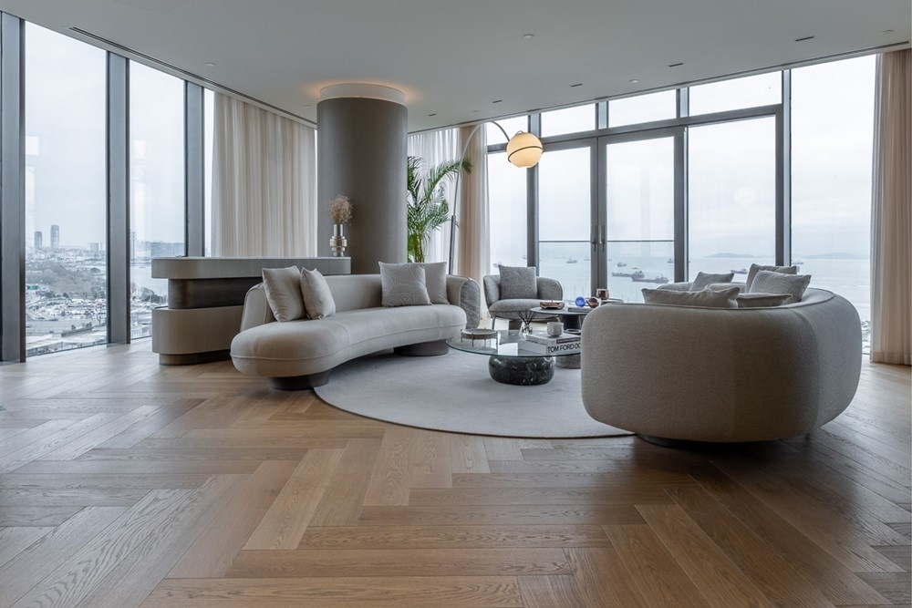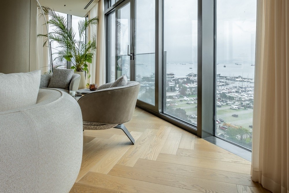 Çağdaş ve seçkin bir tasarım çizgisi benimseyen Ataköy Marinada Residence projesinde DENDRO lamine parke tercih edilmiş ve Olympos D-11 meşe ürünler kullanılmıştır. Salon alanlarında Herringbone/Balıksırtı modeli tercih edilirken, yatak ve çalışma odalarında plank modeli tercih edilmiştir.