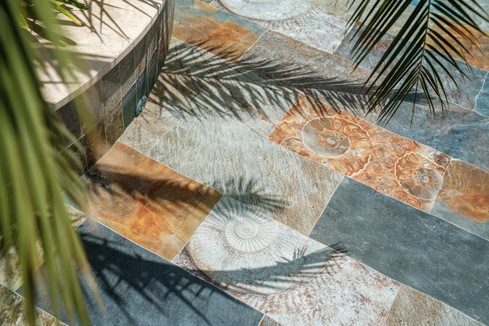 İzmir, Çeşme’de yer alan bu özel projede, Serapool’un Natural Seri havuz karoları içerisindeki Pool Mix koleksiyonunun tüm 18 face’i kullanılarak zengin bir yüzey hareketi oluşturulmuştur. Ayrıca Fossil Mix koleksiyonundan F12, F15, F14, F10 ve F16 face’leri seçilerek tasarıma özgün bir dokunuş katılmıştır.