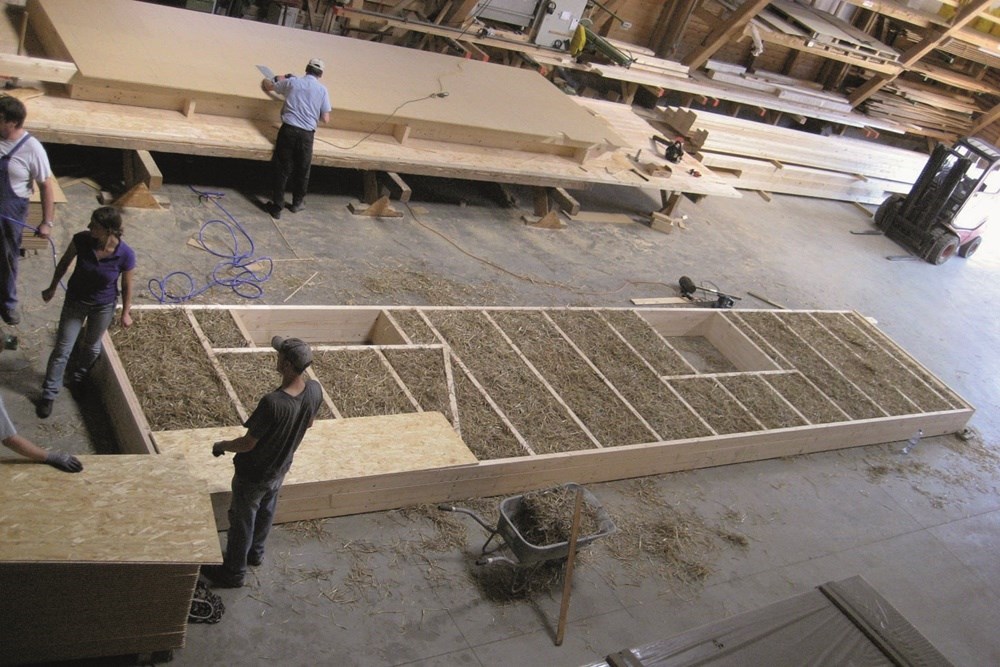Kuzey Avusturyalı genç müteahhitler bunun sürdürülebilir, uygun maliyetli ve desteksiz bir inşa süreci olmasını istiyordu. Bu yüzden, ahşap iskeletli yapıda yalıtım malzemesi olarak preslenmiş küçük saman balyaları kullanmayı tercih ettiler. Bu sıra dışı proje, Kreuzer Holzbau firması ile birlikte gerçekleştirildi. Duvarların dışı, buhar geçirimli EGGER DHF kaplama levhalarıyla kaplandı. Müteahhitler ve yardımcıları saman balya yalıtımını yerleştirdikten sonra, iç kısım formaldehit içermeyen EGGER OSB 3 ile kapatıldı. Sıkıca preslenmiş saman, ahşapla aynı yangın davranışını gösterir ve kaplama ahşap bazlı EGGER levhalarıyla yapıldığından kemirgenler veya böcekler yalıtıma erişemez. Çatı konstrüksiyonu için samanlı yalıtım dahil olmak üzere on iki parça, ahşap konstrüksiyonla önceden imal edildi ve iç kısımda EGGER OSB 3 levhalar kullanıldı. Bu yaklaşım, 175 m²'lik müstakil evin tüm parçalarının hızlı ve verimli bir şekilde imal edilmesini sağladı.