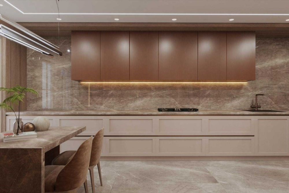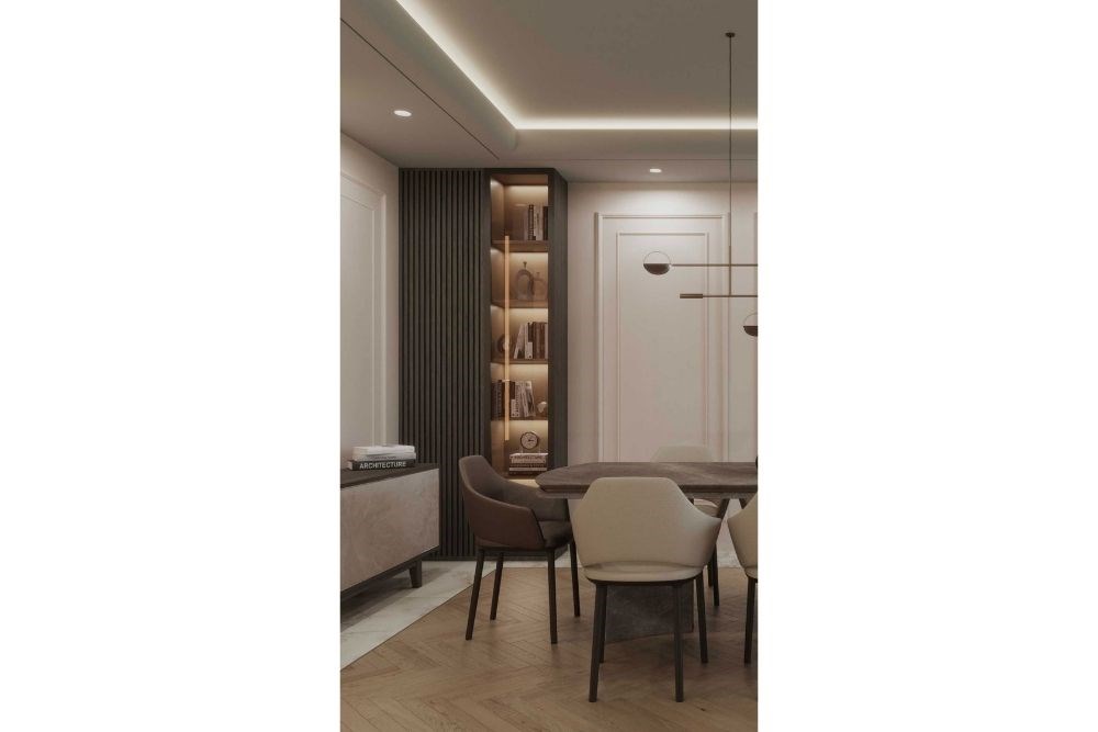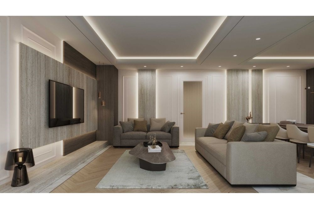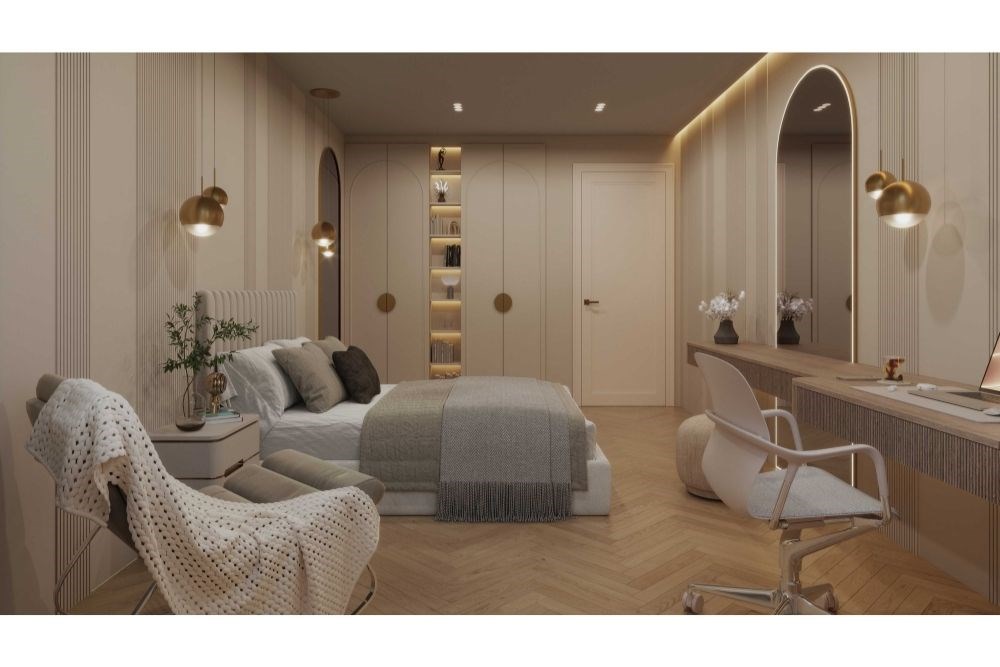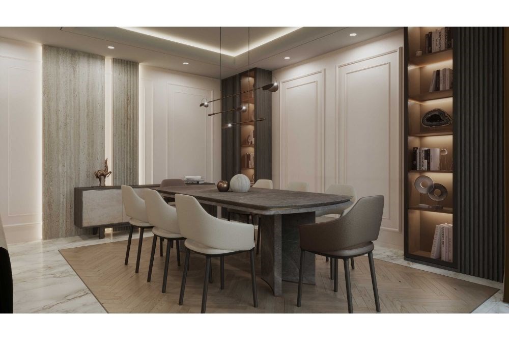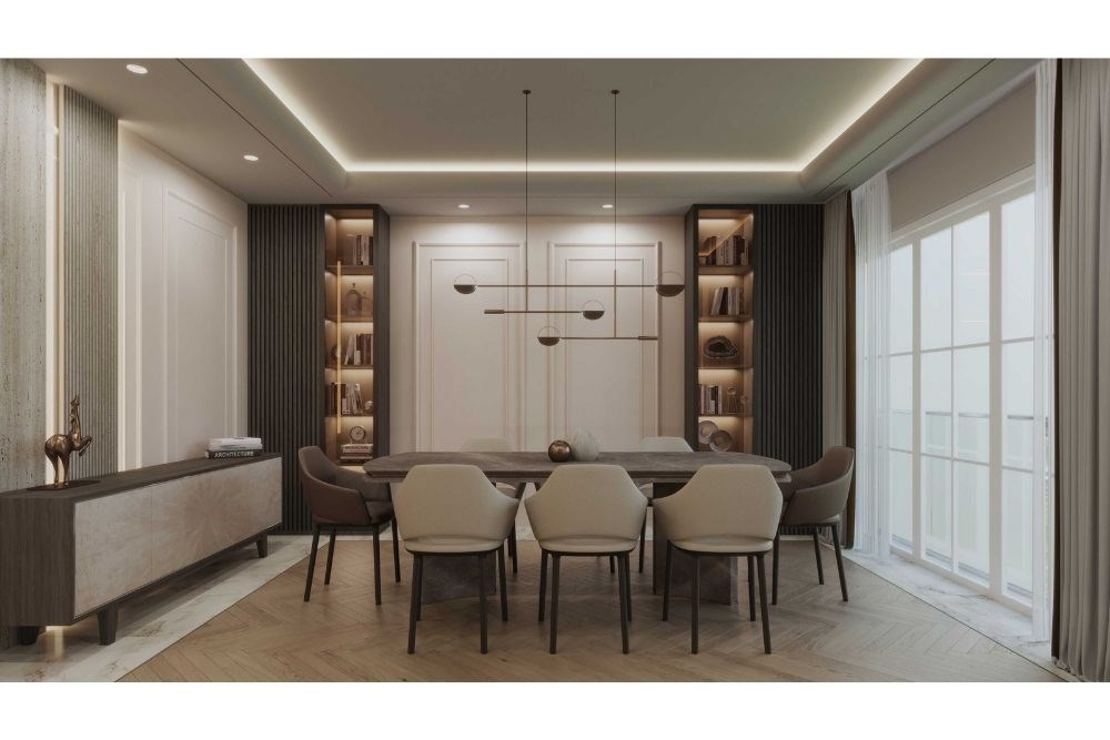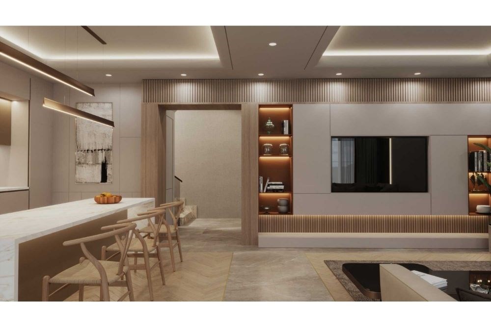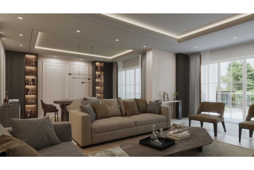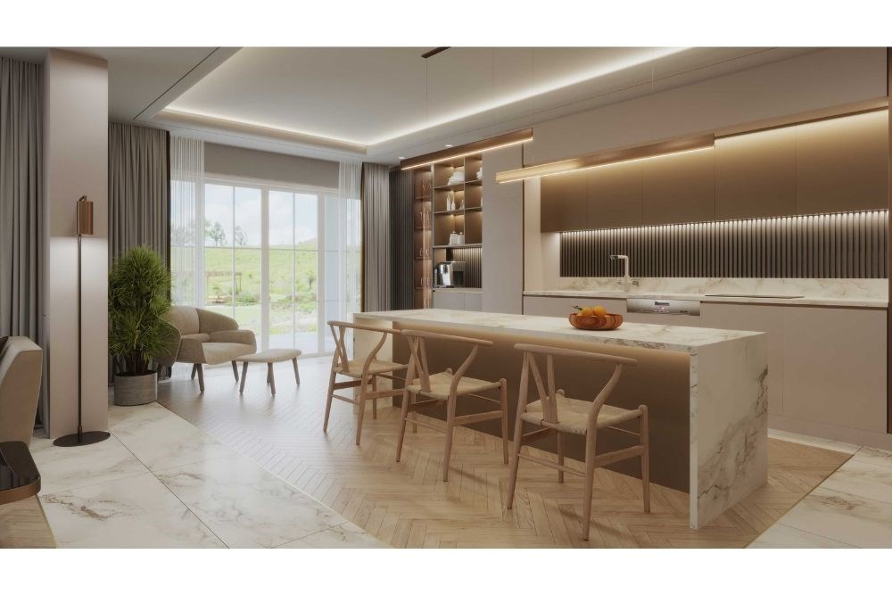 Renk paletinden malzeme seçimlerine, aydınlatma planlamasından mekân düzenlemelerine kadar her şey büyük bir özenle tasarlanmış; her aşama dikkatle değerlendirilerek tüm detaylara incelikle yaklaşılmıştır. Modern tasarım unsurları ile davetkâr yaşam alanları yaratmaya özen gösterilmiştir.