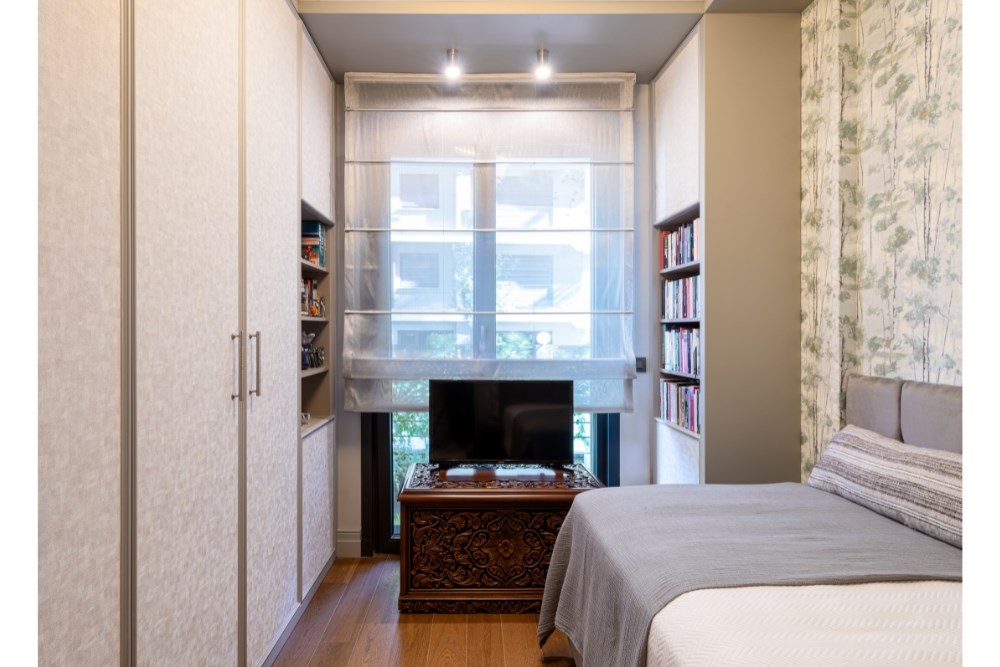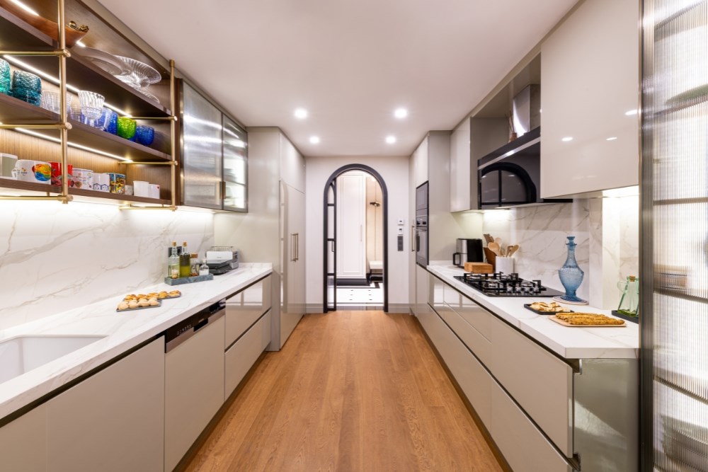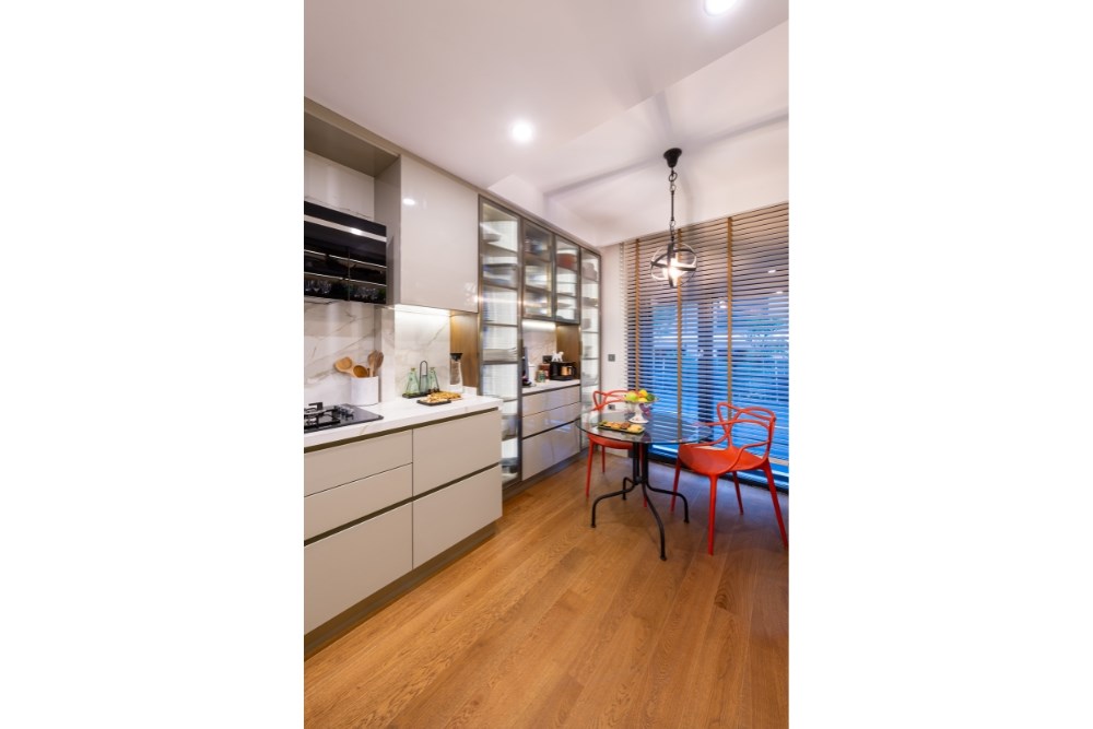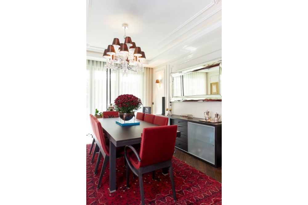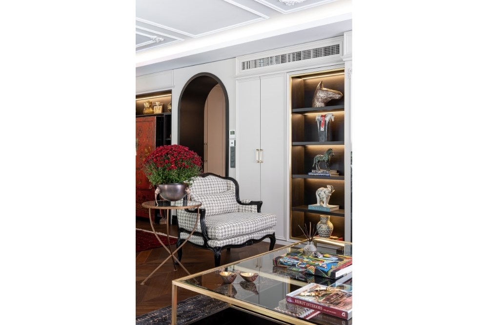 148 metrekarelik dairenin mevcut planında 4 oda ve 1 salon yer alırken, yeni düzenlemeyle 3,5+1 formatına dönüştürülmüştür. Bu dönüşümde, bir oda giyinme odası olarak, bir diğeri ise çamaşır odası olarak değerlendirilmiştir.