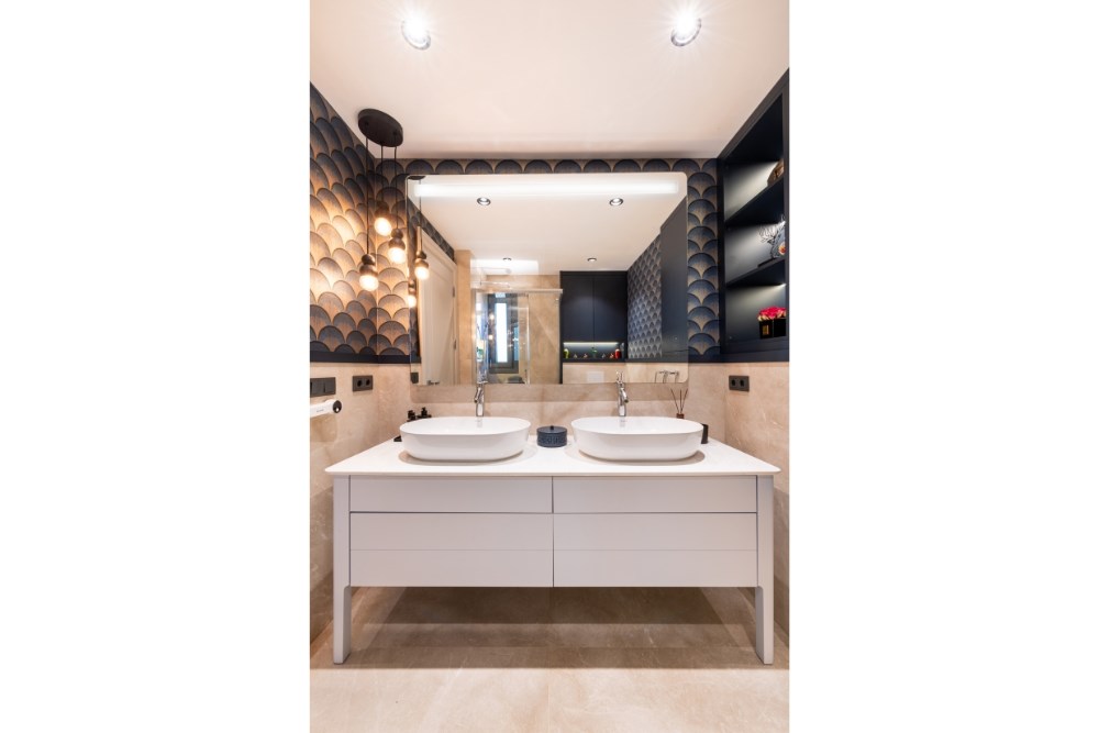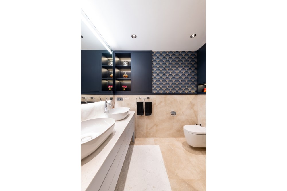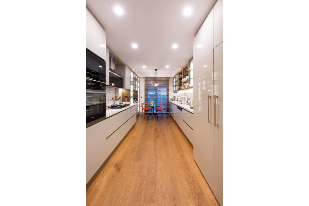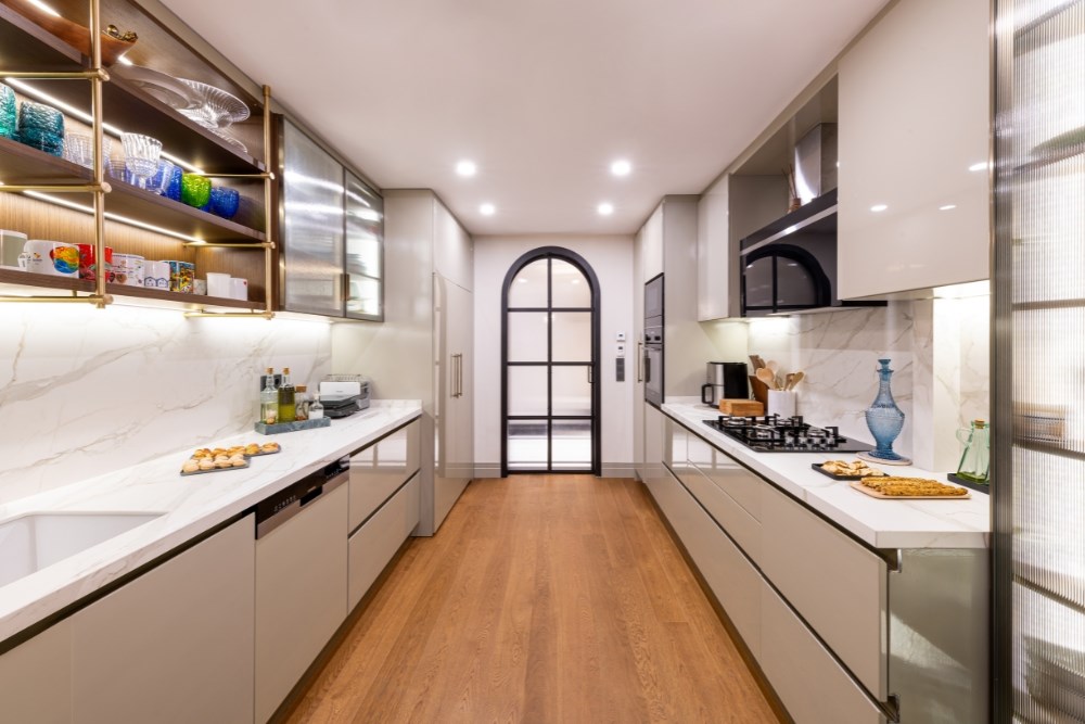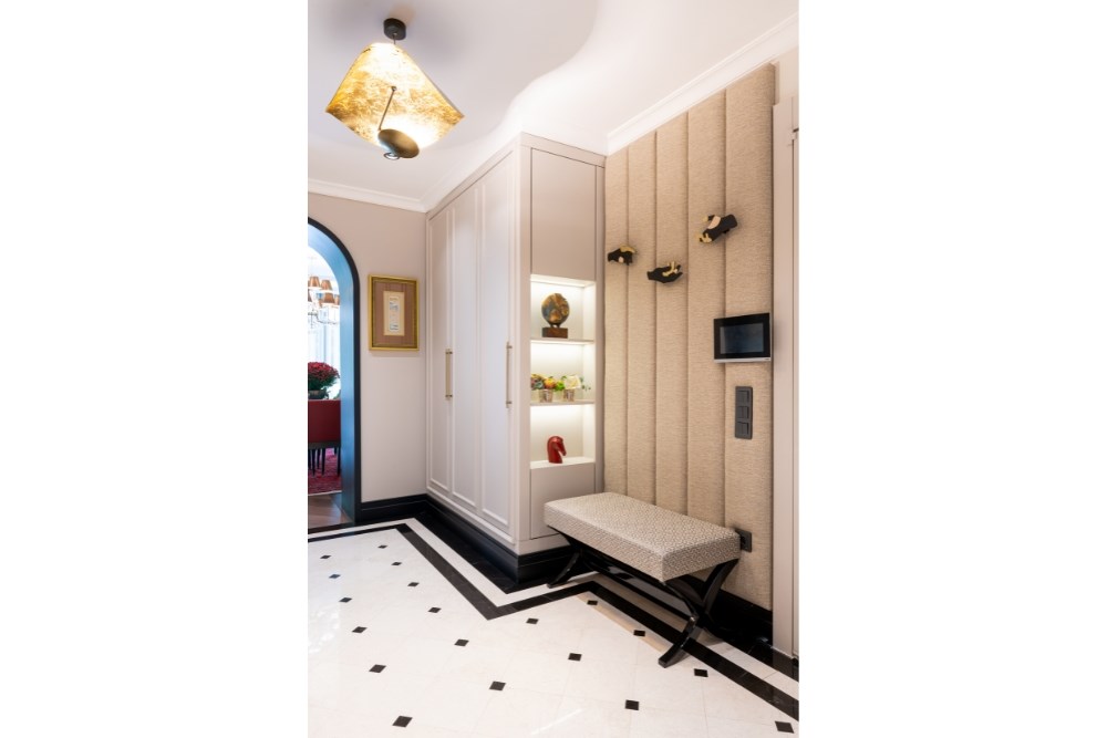 148 metrekarelik dairenin mevcut planında 4 oda ve 1 salon yer alırken, yeni düzenlemeyle 3,5+1 formatına dönüştürülmüştür. Bu dönüşümde, bir oda giyinme odası olarak, bir diğeri ise çamaşır odası olarak değerlendirilmiştir.