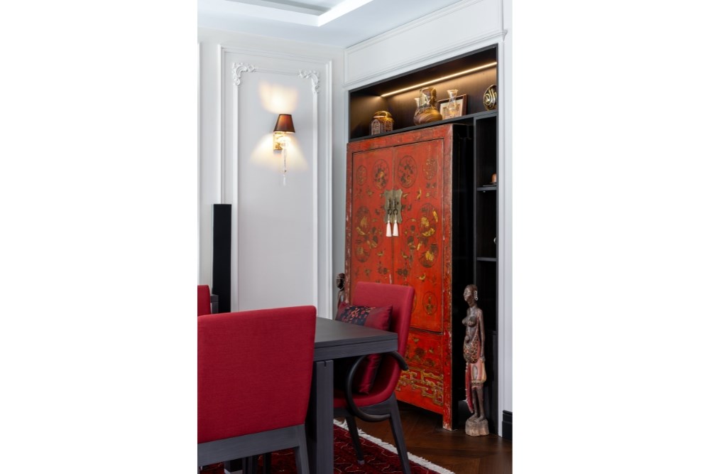 Sakura Mimarlık’ın benimsediği "Hikâyesi Olan Mekânlar Tasarlıyoruz" yaklaşımı, bu projede de yaşam bulmuştur. Suadiye’deki daire, kitaplar, aksesuarlar ve sanat eserleriyle sıcak ve yaşayan bir ev haline gelmiştir. Evde yer alan sandık, Singapur’dan gelen büfe ve bolluk sembolü olarak değerlendirilen nar tablosu gibi pek çok obje, geçmişle kurulan kişisel bağların birer temsilcisi olmuştur. Her biri farklı bir anıya, farklı bir kültüre ve duyguya işaret eden bu detaylar, mekânın kimliğini belirlemiştir.