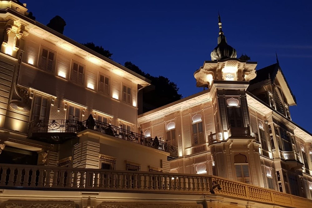 Art-Nouveau tarzda, Çin, Hint, İran, İslam, Osmanlı ve Avrupa mimari üsluplarının bir karışımı olan Huber Köşkü, birbirine ekli iki binadan oluşan bir konak, konağın kuzeyinde büyük bir özenle yapılan ahır ve arabalık bölümlerinden oluşan Faytonhane, Setüstü Köşkü, Av Köşkü, sera ile değerli ağaçların oluşturduğu bitki örtüsü, heykel grupları, duvarlar ve nişlerden oluşmaktadır. (Kaynak: Gürsoy Restorasyon)