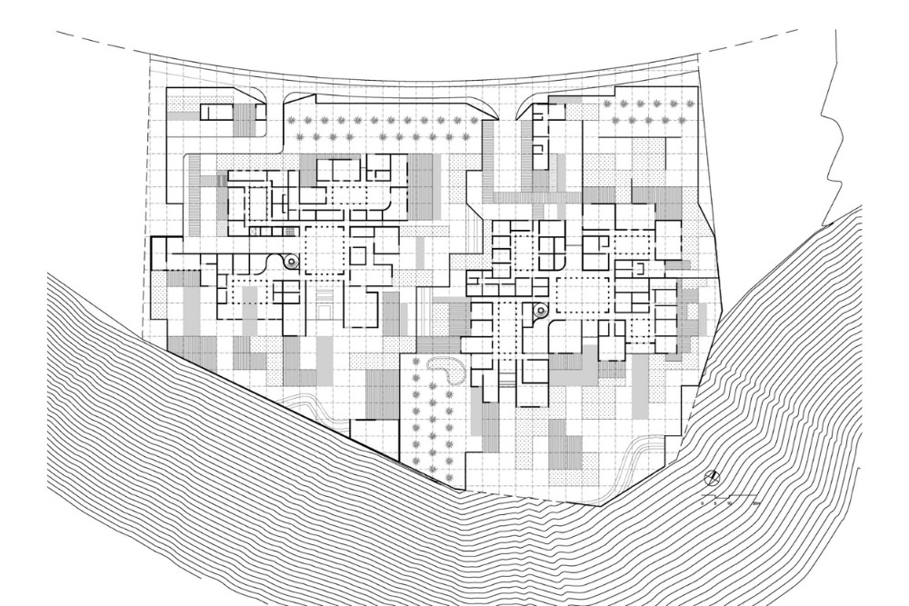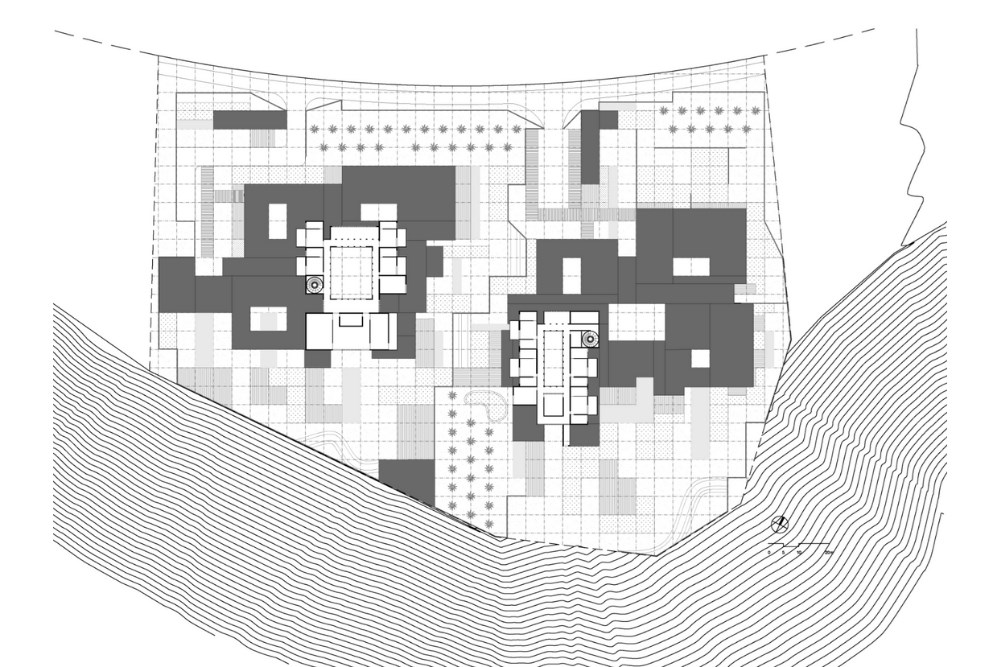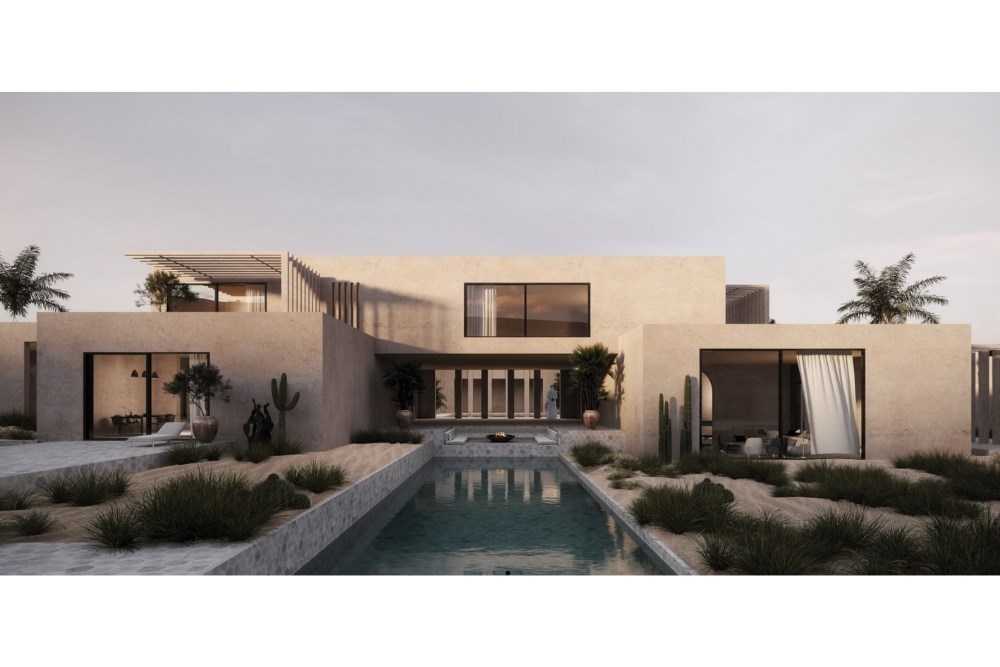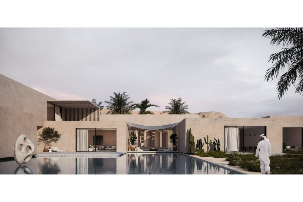 Villalar, içe dönük bir kurgu sağlayan korunaklı bir çevre duvarı ile sınırlandırılmıştır. Bu yapı, mahremiyet, dinginlik ve peyzajla kurulan ilişkiyi pekiştirir. Mimari, merkezi bir bahçenin çevresinde yer alan kapalı ve yarı açık alanlar ritmiyle şekillendirilmiş; Riyad’ın geleneksel avlulu konut tipi yeniden yorumlanmıştır.