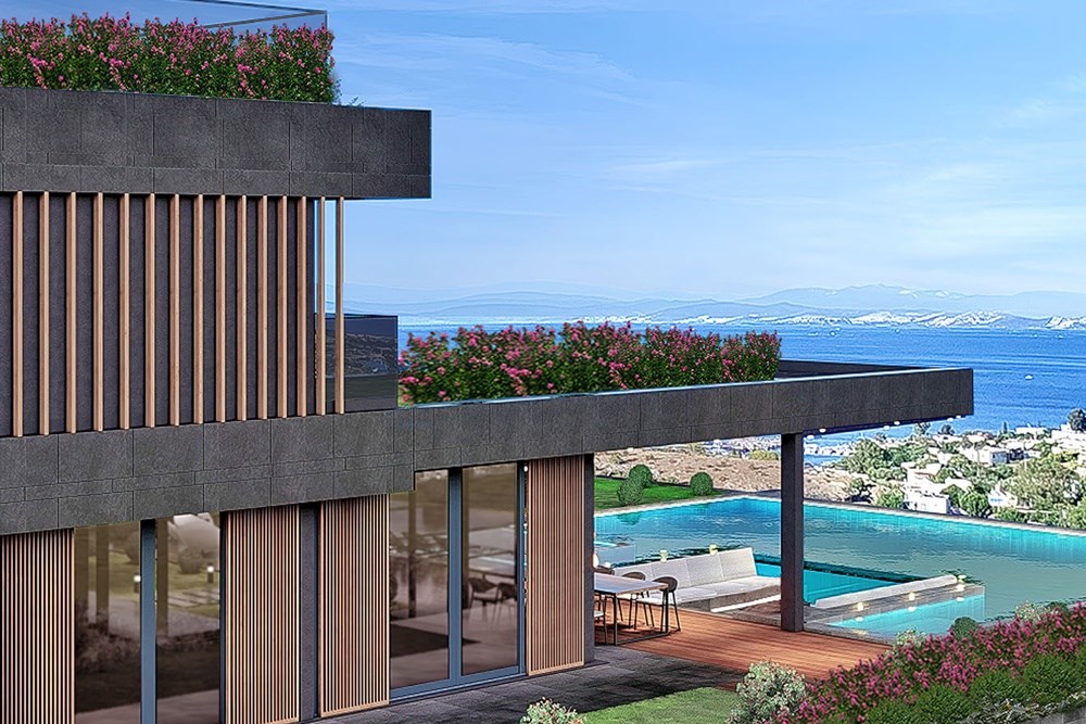 Türkbükü'nde konumlanan The Eight Bodrum, 8 özel villa, tamamı özel yapım mobilyalı 71 rezidans daire ve 15 odalı The Eight Bodrum Hotel’i bir araya getiriyor.