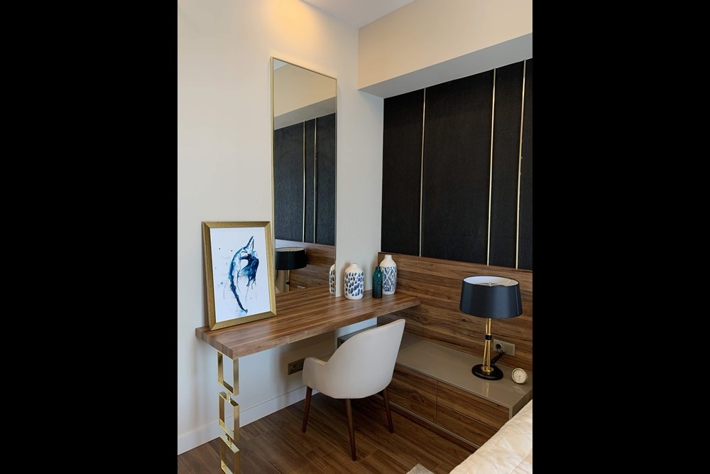 Ağaçlandırma ve yeşil yaşam alanlarına önem verilen ve 749 adet tamamı balkonlu dairelerden oluşan Trio Garden İstanbul projesi için Liona Mimarlık tarafından örnek daire çalışması yapılmıştır. 1+1 daire tipi için fonksiyonel, modern ve sıcak bir atmosfer oluşturulmak istenmiştir. Konsept ahşap, kemik ve turuncu renkler ile oluşturulmuş, doğru ölçekli mobilya ve ayna tercihleri ile kullanım alanı olduğundan daha geniş gösterilmiş ve maksim metrekareye ulaşmıştır.