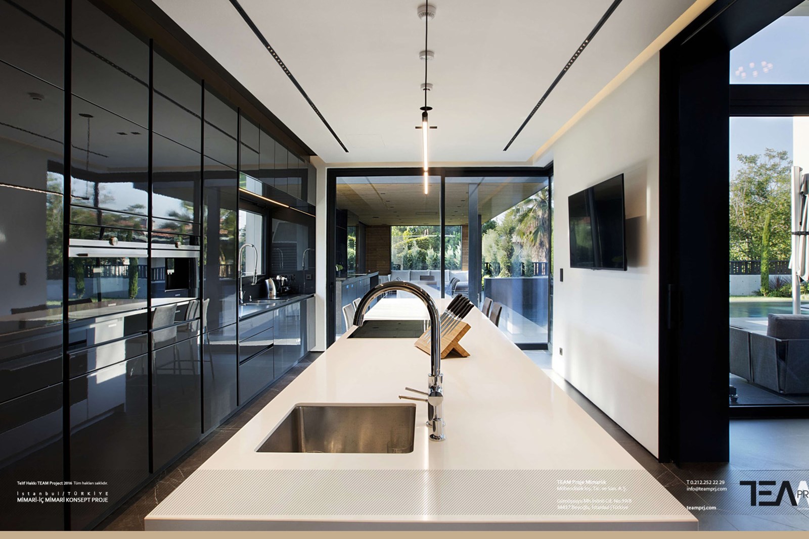 İstanbul Tuzla’da yer alan Villa Lucille, konumlandığı yoğun yapı blokları arasında kütlesel yaklaşımı ve mekansal duruşuyla ayrışan bir pozisyonda yer almaktadır. Kenan Deniz'in mimari vizyonuyla şekillenen bu yapının iç mimari konsept tasarımı ve peyzaj düzenlemesi TEAM Proje Mimarlık tarafından titizlikle hayata geçirilmiştir. Dikey ve yatay eksende farklılaşan geometrik kütlelerin oluşturduğu kompozisyon, cephe tasarımının kimliğini oluşturan ana durak noktalarından biridir. Modernist bir tavır sergileyen bu tasarım anlayışı, iç mekanlarda ve peyzaj düzenlemesinde de bütünlüğünü korur.