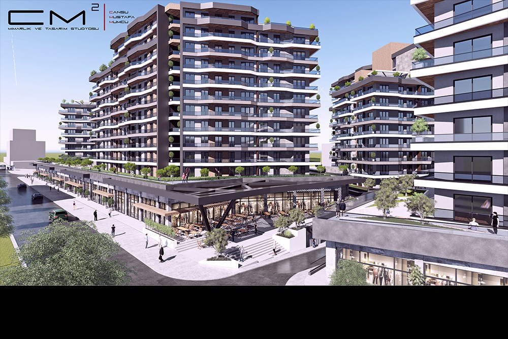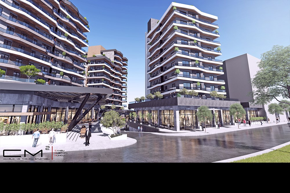 Proje; 1. ve 2. Etap olmak üzere iki aşamada çalışılmıştır. Her iki etap da Ticaret + Konut olarak çözülmüştür.