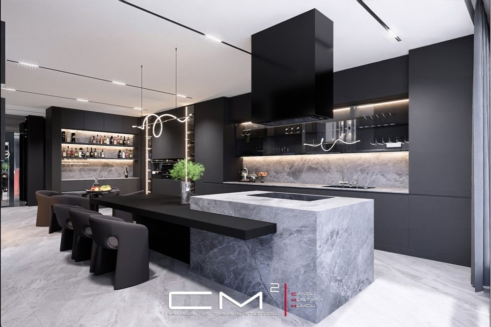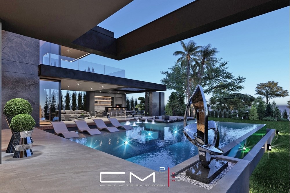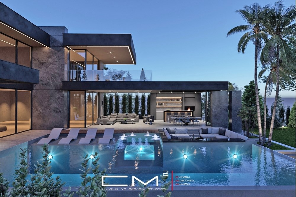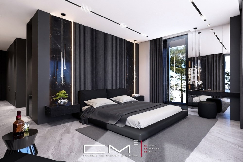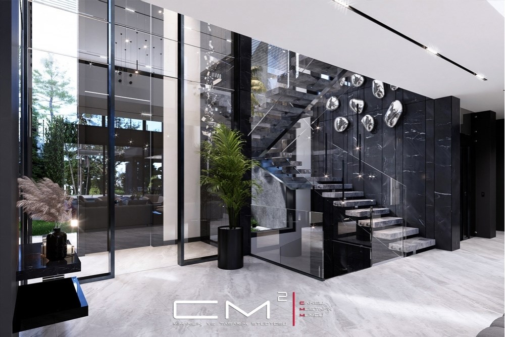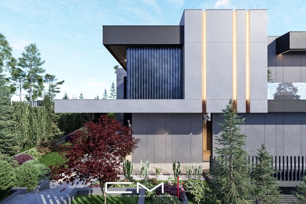 Mimari konsept ve iç mekan tasarımı modern, yalın ve zamansız çizgilerle ele alınmıştır. Proje, mimari hacimdeki dolu - boş oranları, yatay - düşey dengesi ve fonksiyonel gereklilikler gözetilerek oluşturulmuştur. Çağdaş malzeme tercihleri ve aydınlatma detayları ile tasarım zenginleştirilmiştir.