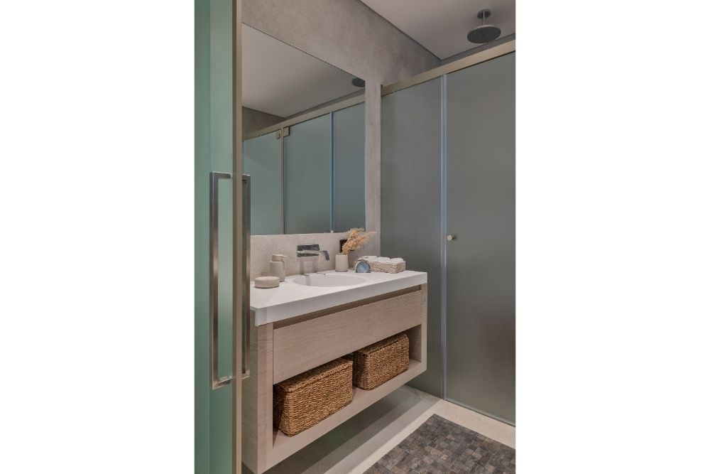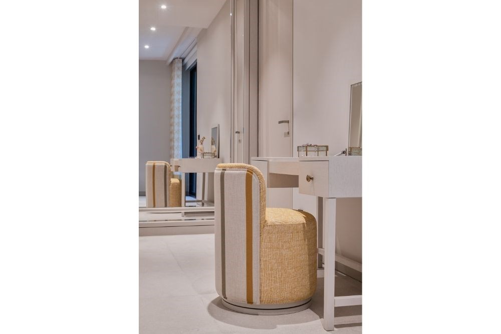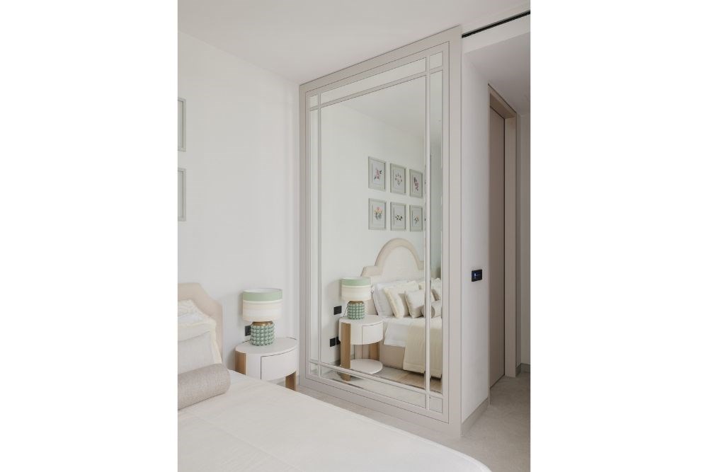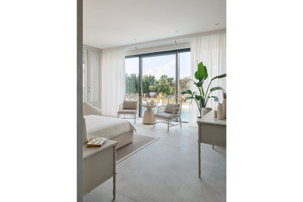 İç kısımlarda üç farklı renk temasına sahip misafir odası ve bir ebeveyn yaşam alanı yer alıyor. Havuza manzarası olan odanın ismini ‘resort’ koyan tasarım ekibine göre, bambu detayların, hasır çıtalamaların ve keten perdelerin hakim olduğu bu mekân girildiği anda kullanıcıyı bambaşka bir yere ışınlıyor. Dingin tonları ve minimal desenleri ile hemen yanı başındaki havuzun maviliğine ve arkasındaki saklı bahçeye bakarak kullanıcıyı çok uzaklara götürebiliyor.