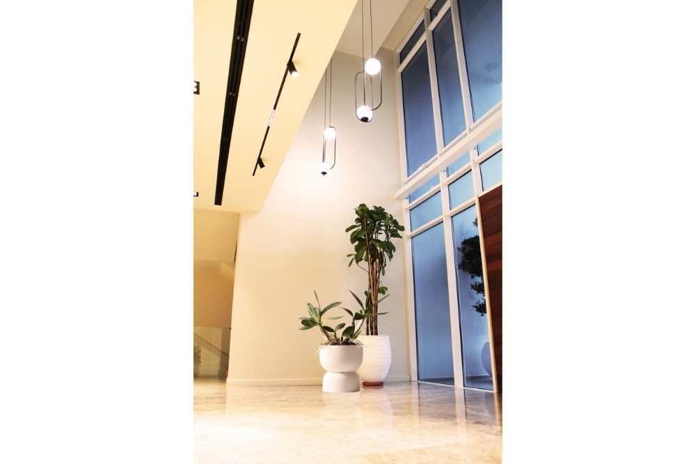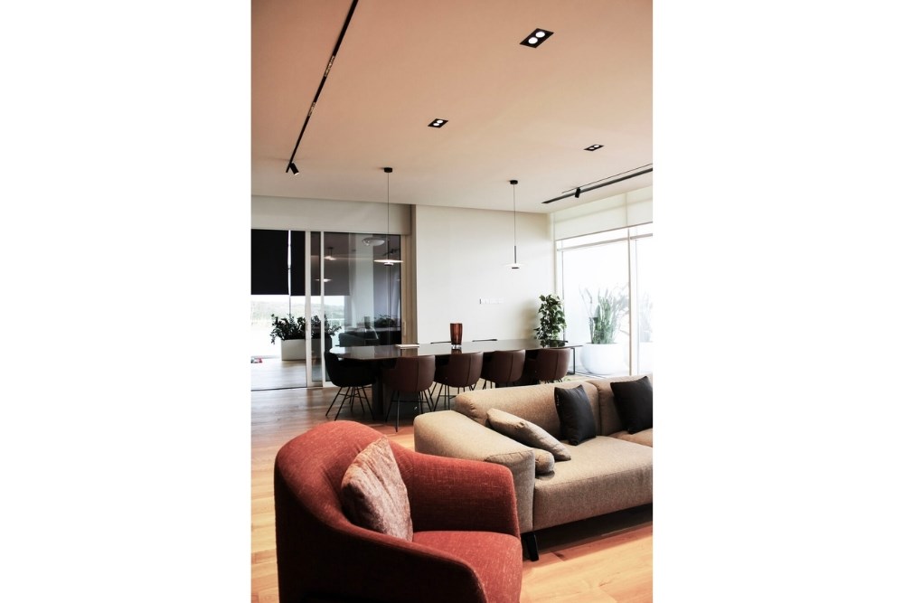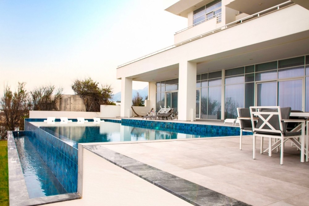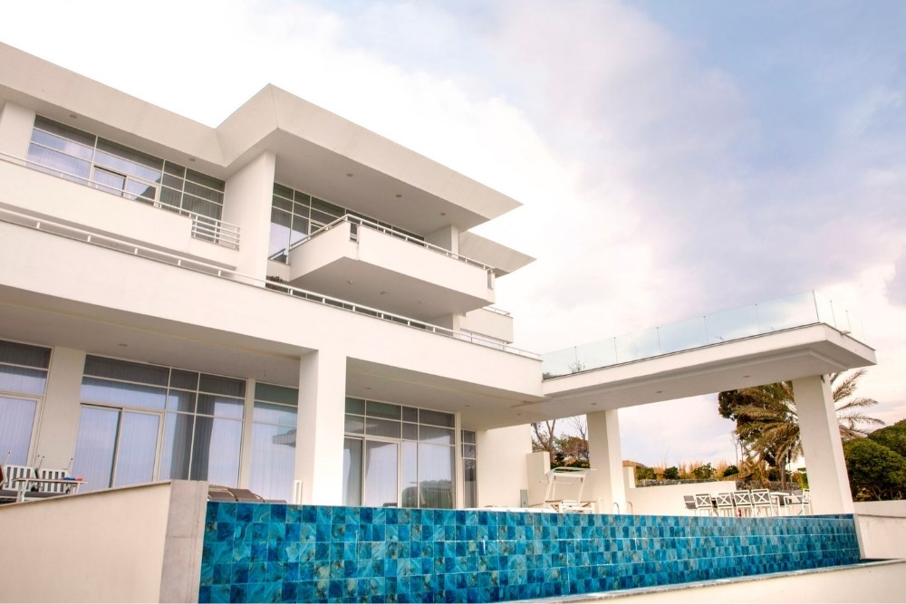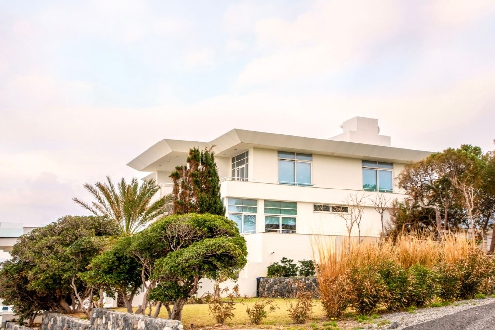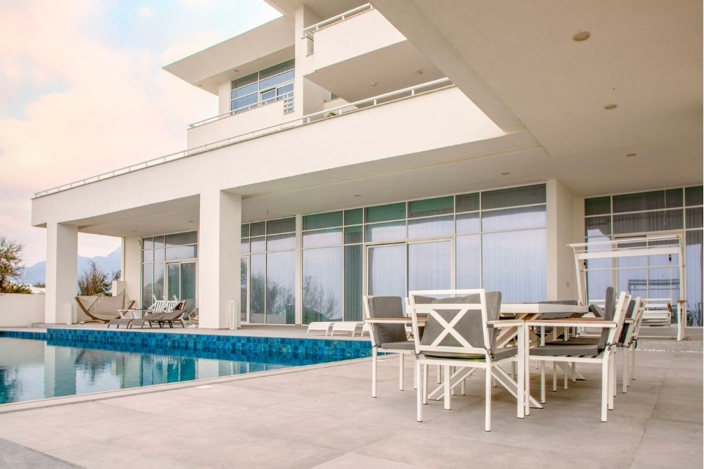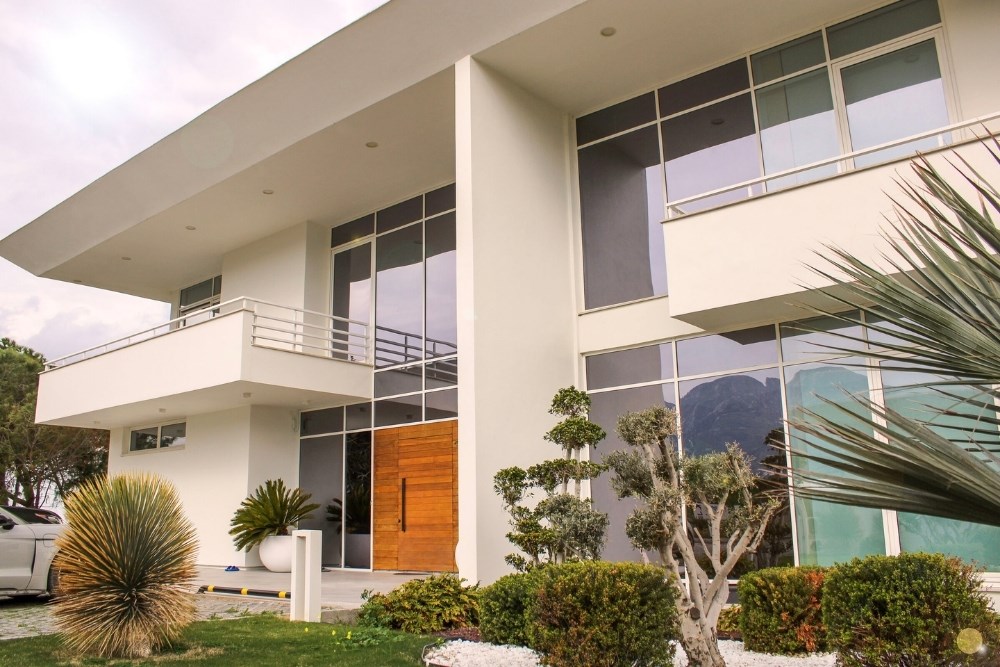 Proje arazisi Girne’nin merkezine göre batı tarafında, sınırları deniz kıyısından başlayan ve kuzey-güney hattında konumlanan dikdörtgen bir arazidir. Arazi yüksek eğimli, Girne’nin hakim rüzgar yönü olan Kuzey-Batı yönüne, dolayısıyla deniz tuzu ve nemli rüzgar etkisine tamamen açık, Akdeniz tipi makilikler ile çam ağaçlarıyla çevrili, düşük yapı yoğunluğuna sahip bir bölgede bulunmaktadır. Bu doğal faktörler göz önünde bulundurularak, binada pasif iklimlendirme prensipleri ve solar enerji sistemleri, KKTC enerji mevzuatına uygun olarak kullanılmış ve Akdeniz güneşinden büyük ölçüde yararlanılmıştır. Batı cephesi mümkün olduğunca opaklaştırılmış, saçaklar ve gölgelikler aracılığıyla kuzey ve güney ışığı bina içerisine kontrollü bir şekilde alınmıştır. Bina toplam kapalı alanı 1410 m2 olup, eğime oturan bodrum, zemin ve 1 normal katta ilaveten arazinin güneyinde konumlanmış 1 misafir evinden oluşmaktadır.