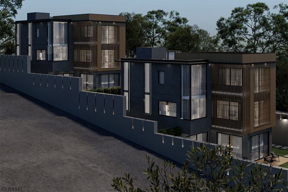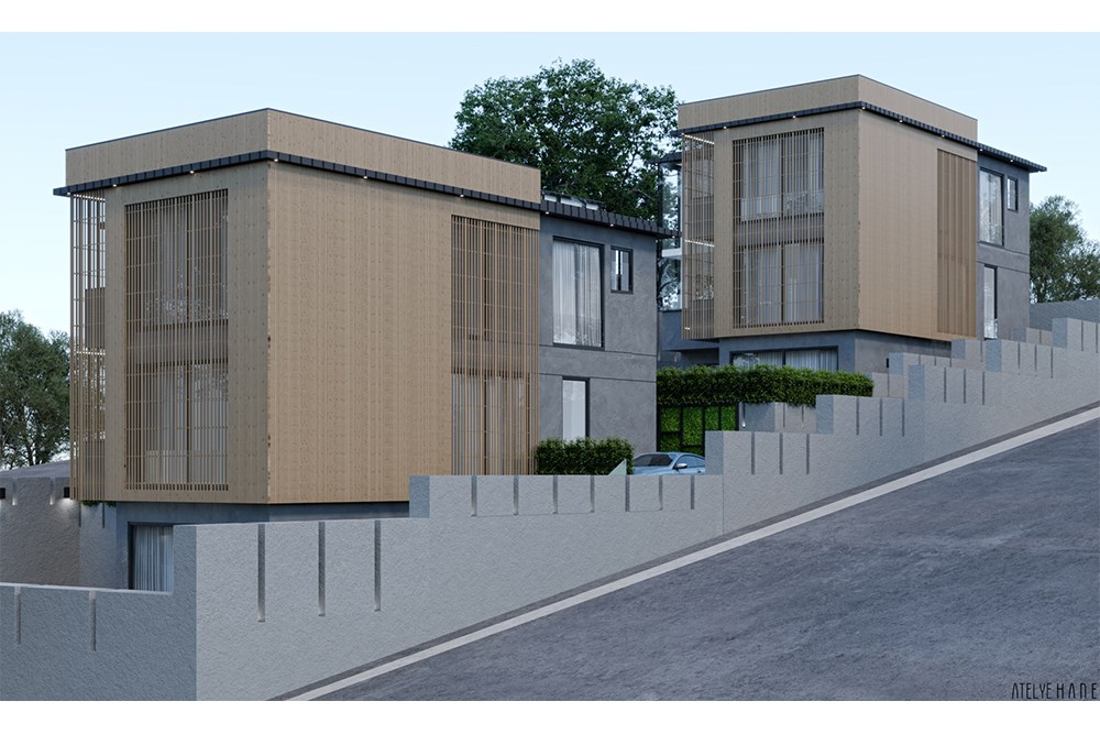 Başiskele/Kocaeli’de bulunan eğimli arazide körfez manzarasına hakim olarak tasarlanan iki müstakil konut projesinde kullanıcı talebine göre bodrum katta ıslak hacim mekanları ve dış mekanda bulunan havuz alanı ile entegreli olan açık plan düzenine sahip mutfak ve oturma alanı tasarlanmıştır. Zemin katta ana salon ve mutfak alanı bulunurken 1.katta toplamda üç yatak odası ve bir çamaşır odası bulunmaktadır.
