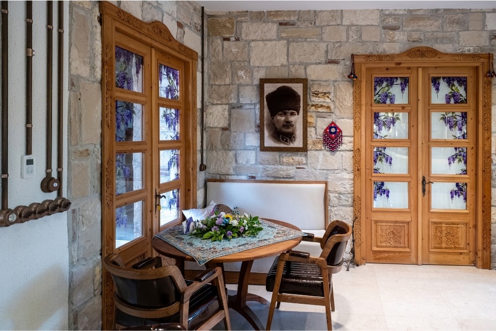 Geleneksel Türk Evi mantığıyla tasarlanan müze ve konutlar, Anadolu'nun kültürel ve tarihi dokusunu yansıtan unsurlarla zenginleştirilmiştir. Modern mimari ile geleneksel Anadolu mimarisinin birleşimi, yapının estetik ve işlevselliğini artırmaktadır. Taşıyıcı sistemi, betonarme yapı sistemi olarak çözülen yapılarda Urla Taşı kullanılarak duvarlar 60 cm olarak inşa edilmiştir. Taş duvarlarda tasarlanan nişler, müzenin cephesine derinlik ve görsel zenginlik katar. Farklı boyutlarda ve şekillerde tasarlanmış olmaları, duvarın dinamik bir görünüm kazanmasını sağlar. Nişlerin derinliği, ışık ve gölge oyunları yaratır. Bu, sergilenen eserlerin daha etkileyici bir şekilde görünmesini sağlar. Taş duvarlar ve nişler, geleneksel mimari unsurları yansıtır. Nişler, sadece estetik değil, aynı zamanda işlevsel bir amaca hizmet eder. Sanat eserlerinin yanı sıra, bilgilendirici panolar veya diğer sergi materyalleri için de kullanılabilir.