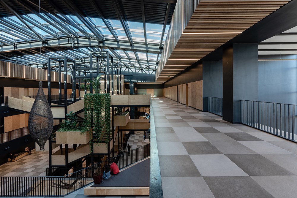 317.000 nüfuslu bir semtte yer alan proje, tamamı SO? Tarafından yeniden yapılandırılan ve yeniden tasarlanan kütüphane, çocuk kütüphanesi, çok amaçlı salon, oyun alanı, atölye ve stüdyolar ve sinema salonları gibi hareketli tesisleri ile önemli bir halk alanı olarak hizmet vermektedir. Bina, tüm iç mekanın ve cephenin yeniden tasarlanmasını gerektiren hem yapısal hem de mimari tadilattan geçti. Mevcut mimari yerleşim planına ana müdahale, -2000 m2'lik dev atriyumun, dikey bahçe görevi gören ahşap uzantılara sahip çelik bir merdiven yerleştirilerek yeniden yapılandırılmasıdır. Bu etkileyici sirkülasyon elemanı, binanın halka açık girişi için güçlü bir görüntü sağlar ve cam bir çatı ile kaplı atriyumun etrafına dağılmış farklı tesisler arasında iç sirkülasyon için bir kısayol sağlar.