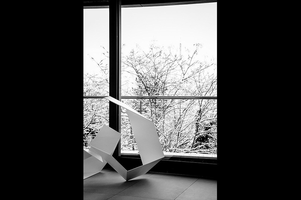 Sergi mekânı duvarları tek başlarına serbest yüzeyler veya nişler olarak konumlandırılmıştır. Bu duvarlar arasındaki boşluklar dışarıdaki manzara parçalarını çerçevelemektedir. Sergiden yan mekânlara geçildiğinde ise tamamen farklı bir deneyime girilmektedir.